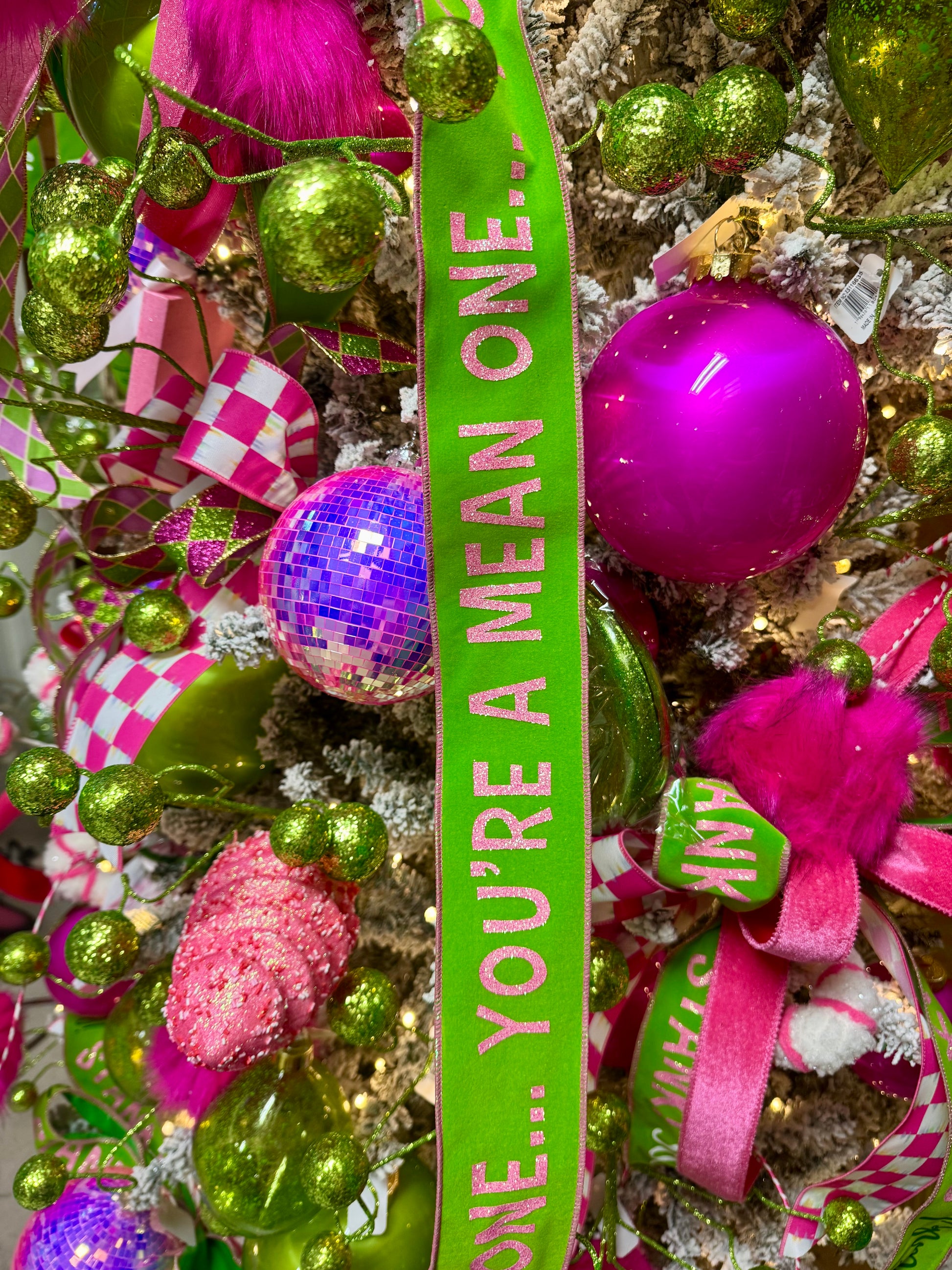 2.5 Inch By 10 Yard Lime Green And Pink You're A Mean One Ribbon
