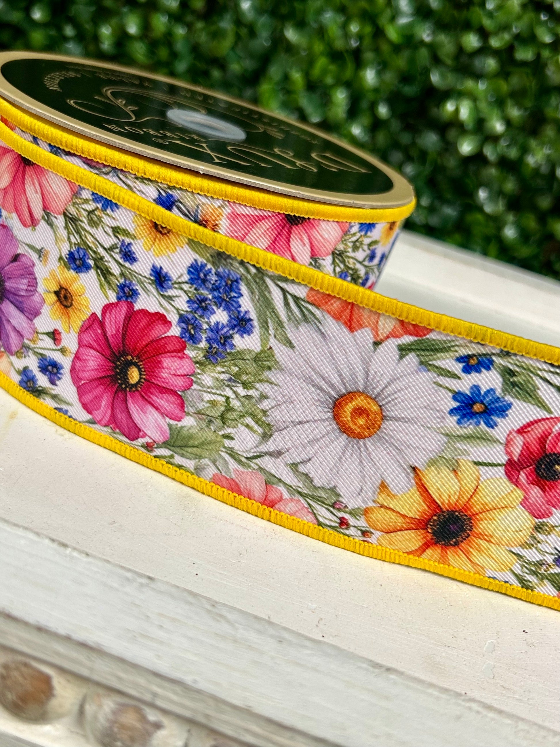 2.5 Inch By 10 Yard Mixed Wildflowers Ribbon