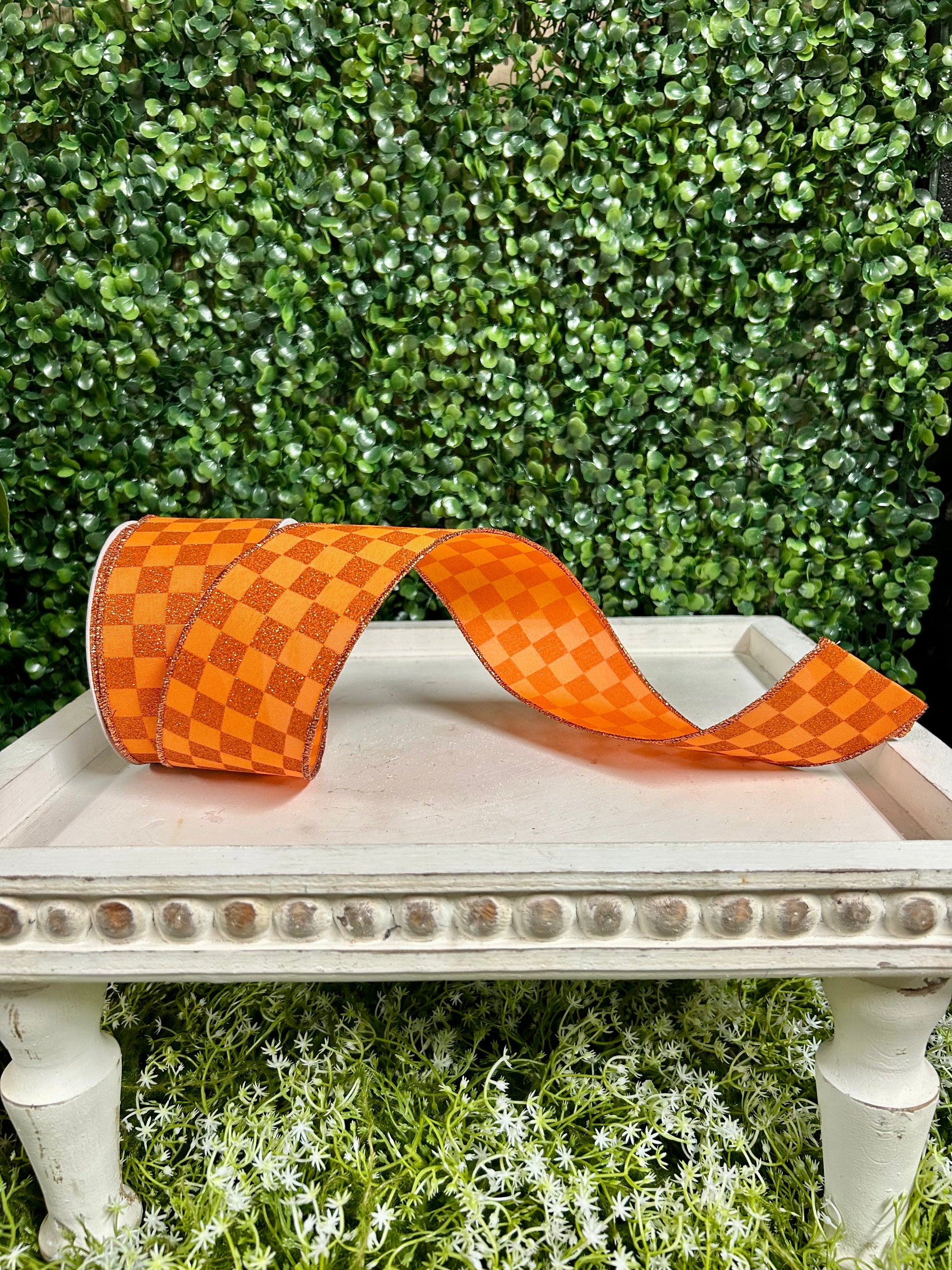 2.5 Inch By 10 Yard Orange Glitter Check Ribbon