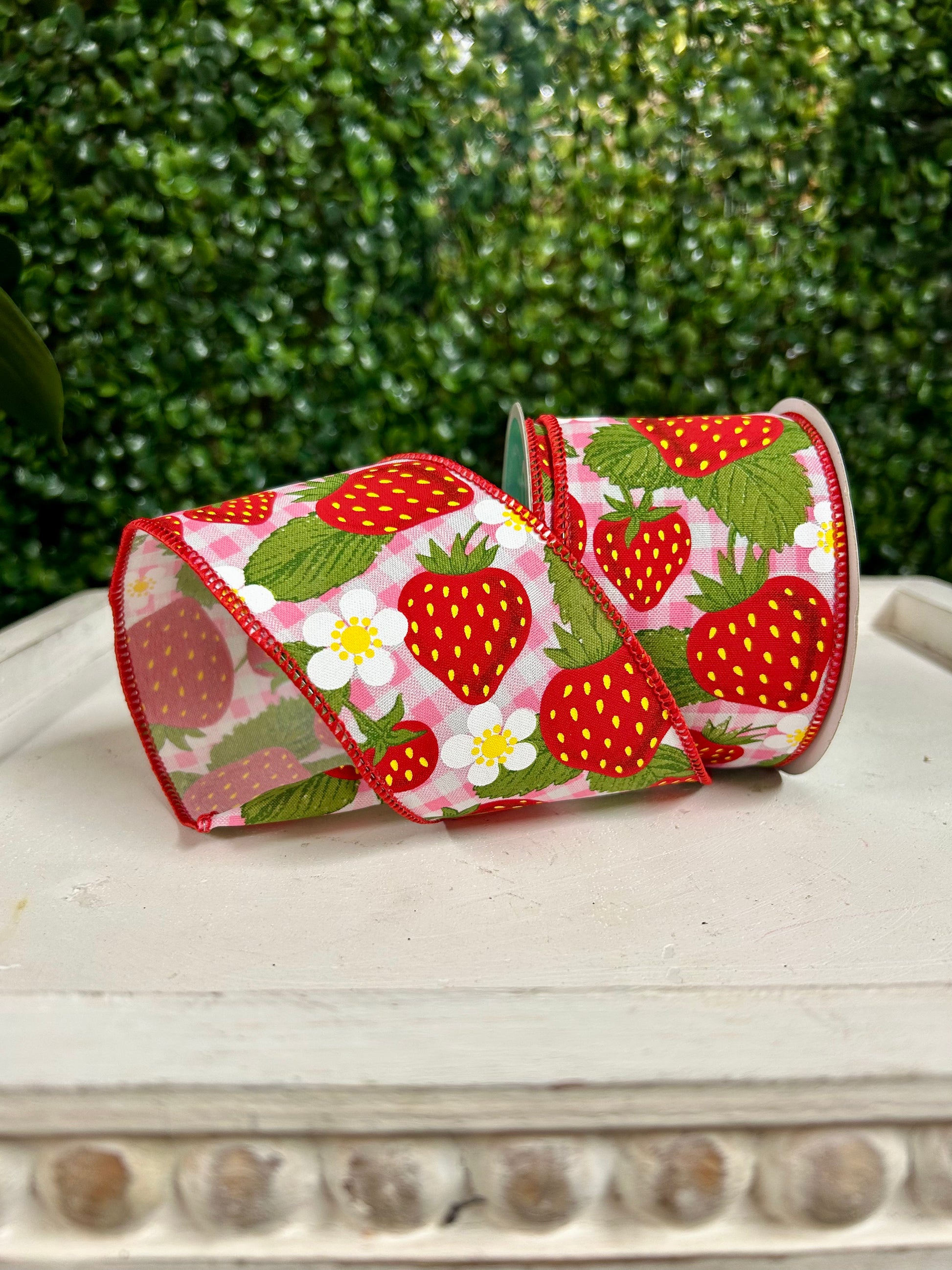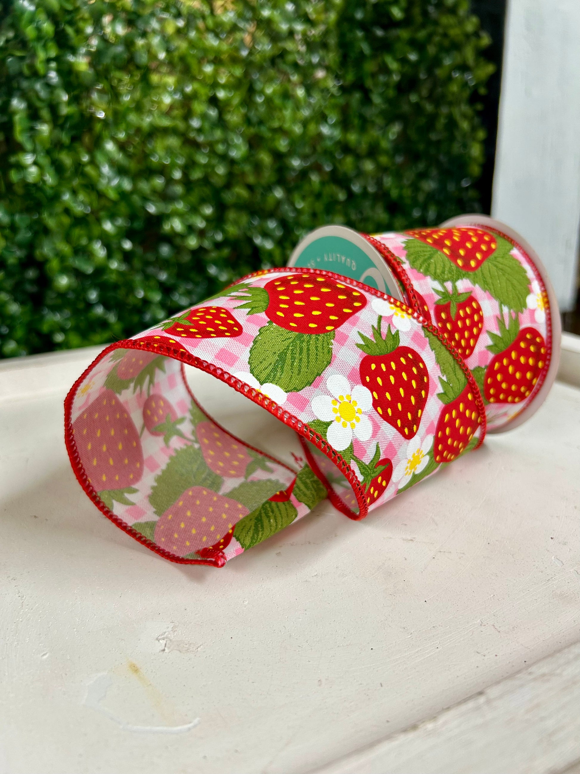 - Add A Sweet Touch To Your Next Display With The Help Of This Strawberries On Woven Check Ribbon! Featuring A Wired Edge, Plus A Collection Of Plump Strawberries, Along With A Pink And White Check Base That Makes The Strawberries Pop! Use This Ribbon In Any Display Of Your Choice, Ideally Around Summertime, When The Strawberries Are Nice And Ripe!