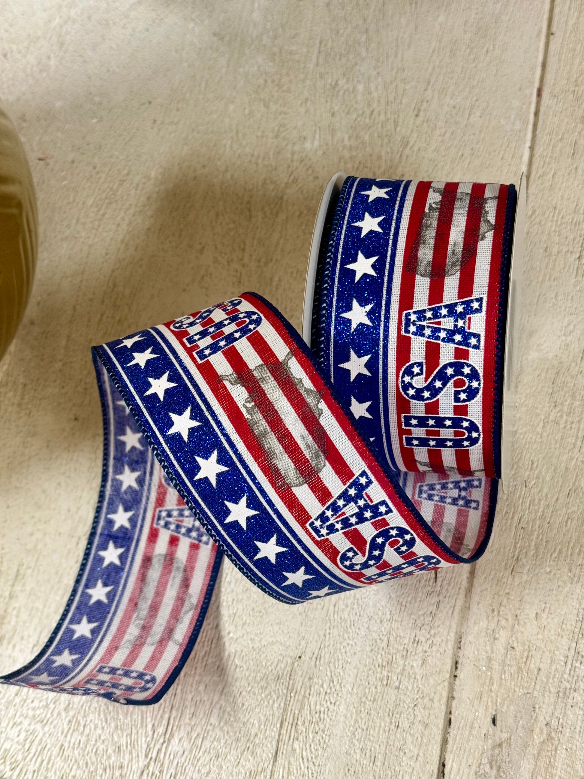 2.5 Inch By 10 Yard USA Red And Blue Glitter Ribbon