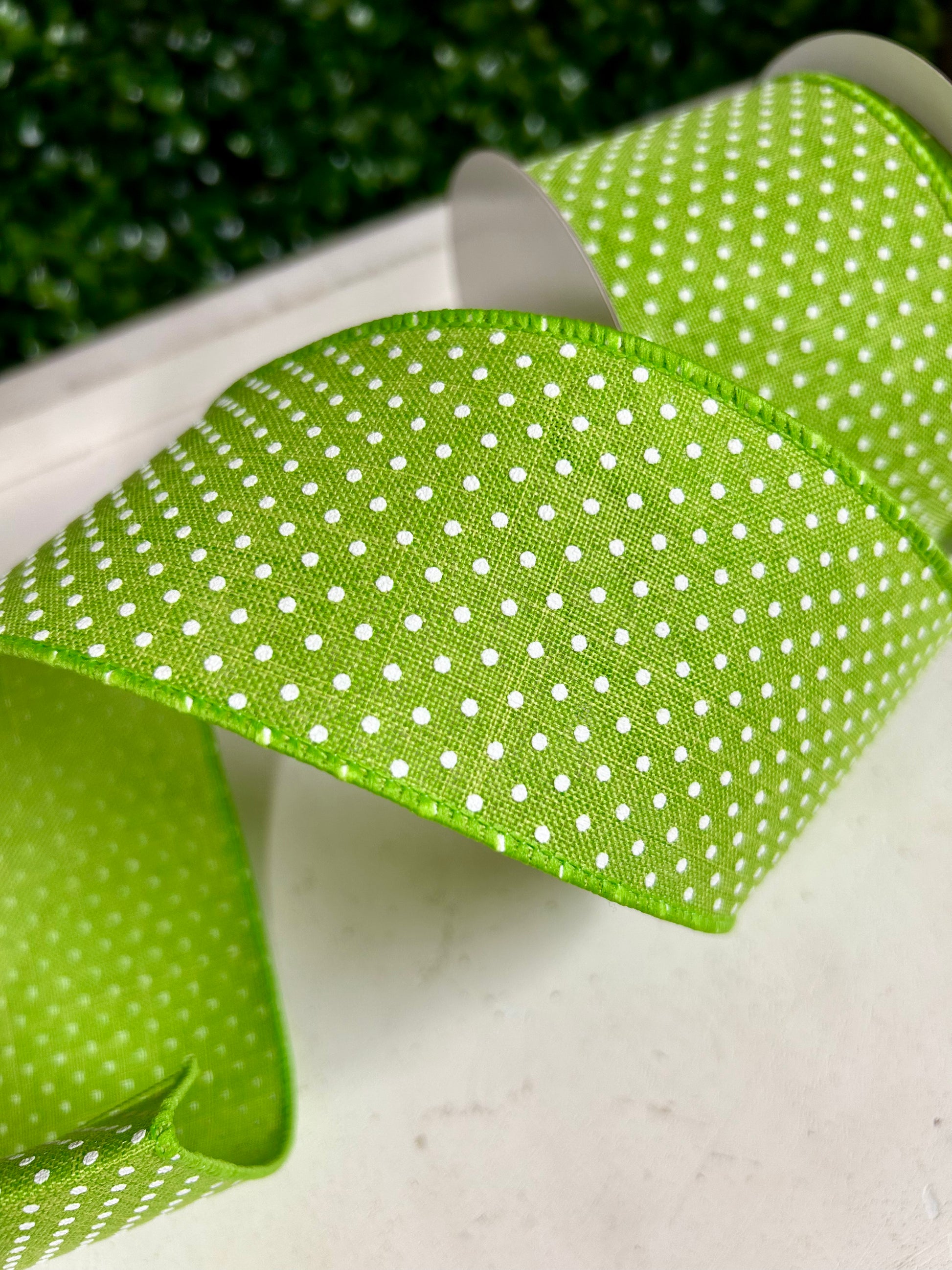 - Get Wrapped Up In Decorating With The Best, Once You Use This Raised Swiss Dots On Royal Ribbon! This Ribbon Features A Lime Green Base, With A Collection Of White Swiss Dots Throughout To Give It An Unmistakable Appeal! As This Ribbon Includes A Wired Edge, It Will Be Useful In Any Creative Adaptation You Find Fitting!