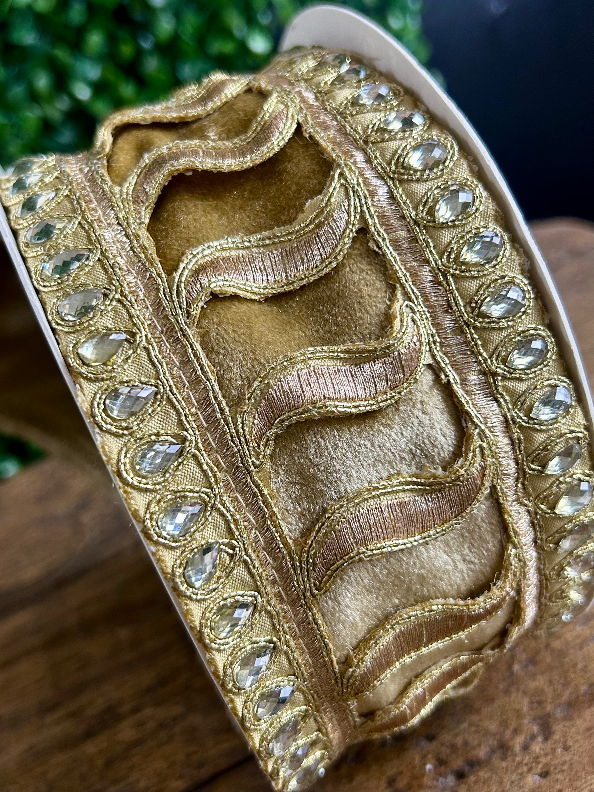 2.5 Inch By 5 Yard Champagne Jeweled Trim Elegance Velvet Ribbon