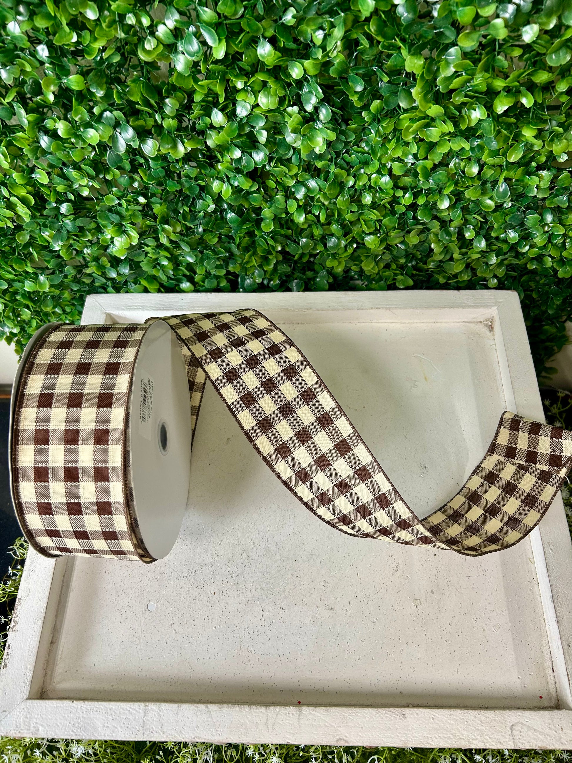 2.5 Inch By 50 Yard Brown And Cream Woven Small Check Ribbon