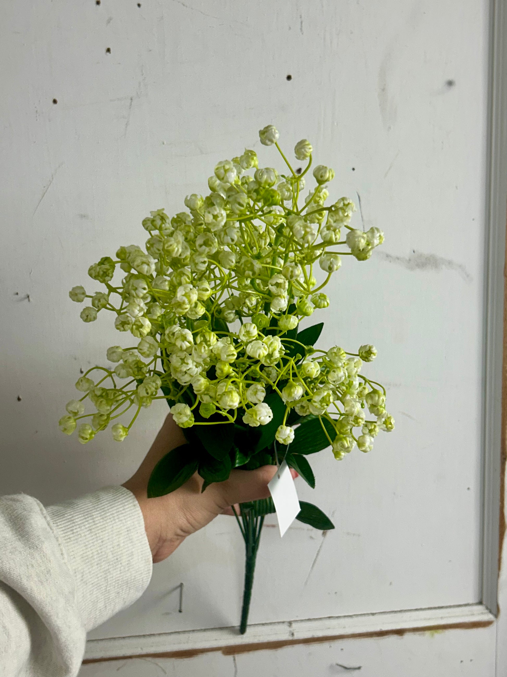 Elevate your seasonal arrangements with this 20-inch Gypso Bush, featuring a sophisticated blend of cream and green tones. Perfect for spring, summer, and fall displays, this versatile filler brings texture and movement to bouquets, centerpieces, and floral designs. The natural, airy quality of gypsophila complements any color palette while adding depth and visual interest. Ideal for both professional florists and DIY enthusiasts seeking premium botanicals that maintain their beauty throughout the season.