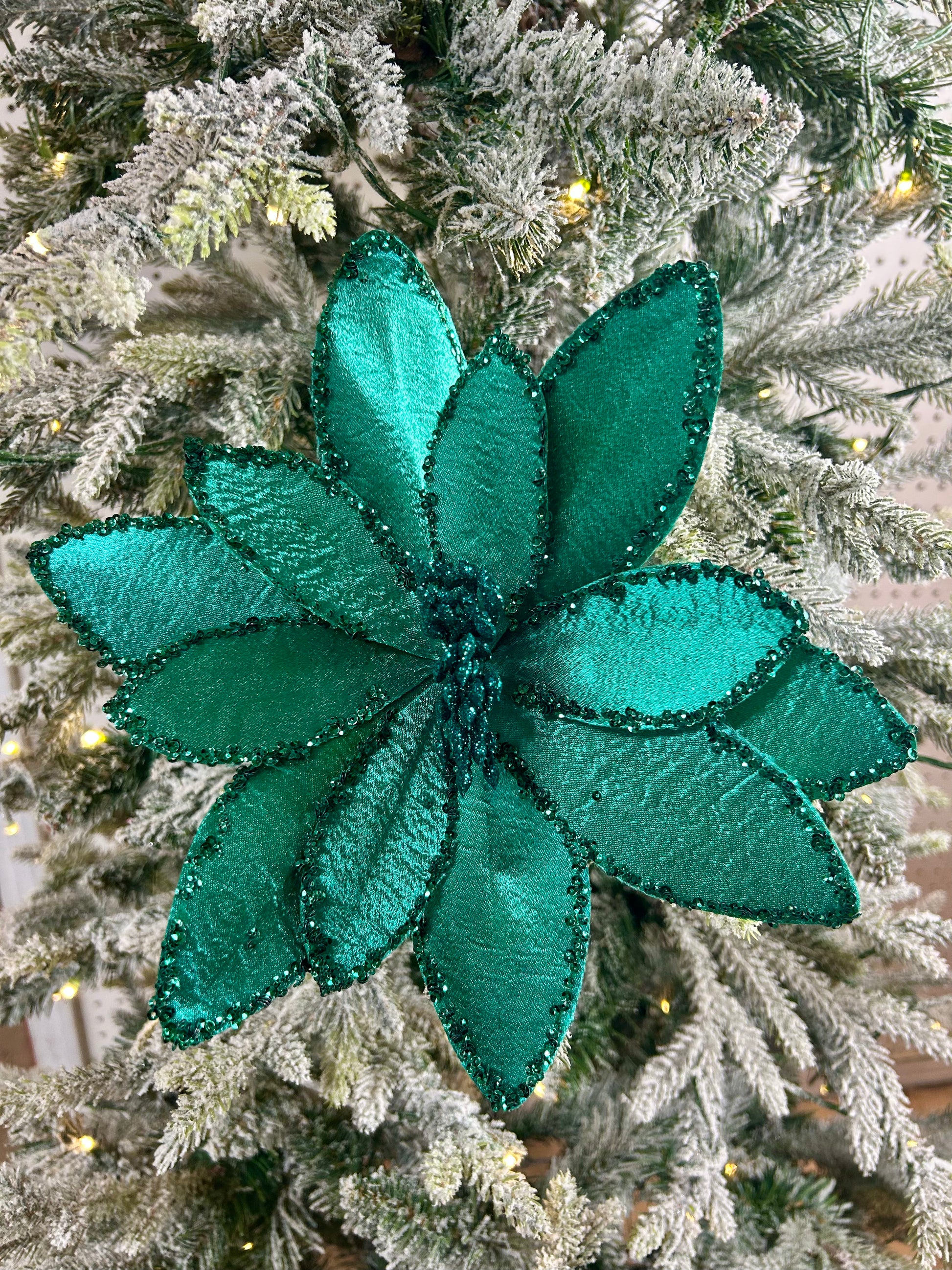 20 Inch Jade Green Satin And Glitter Poinsettia