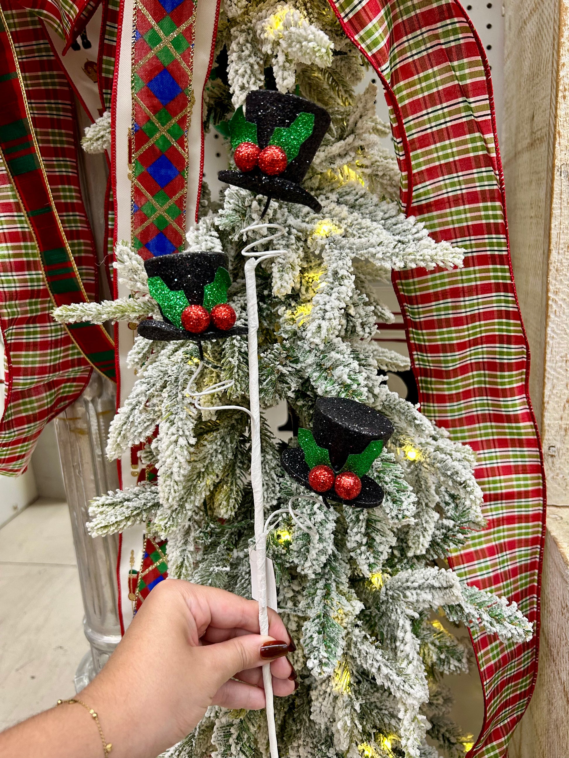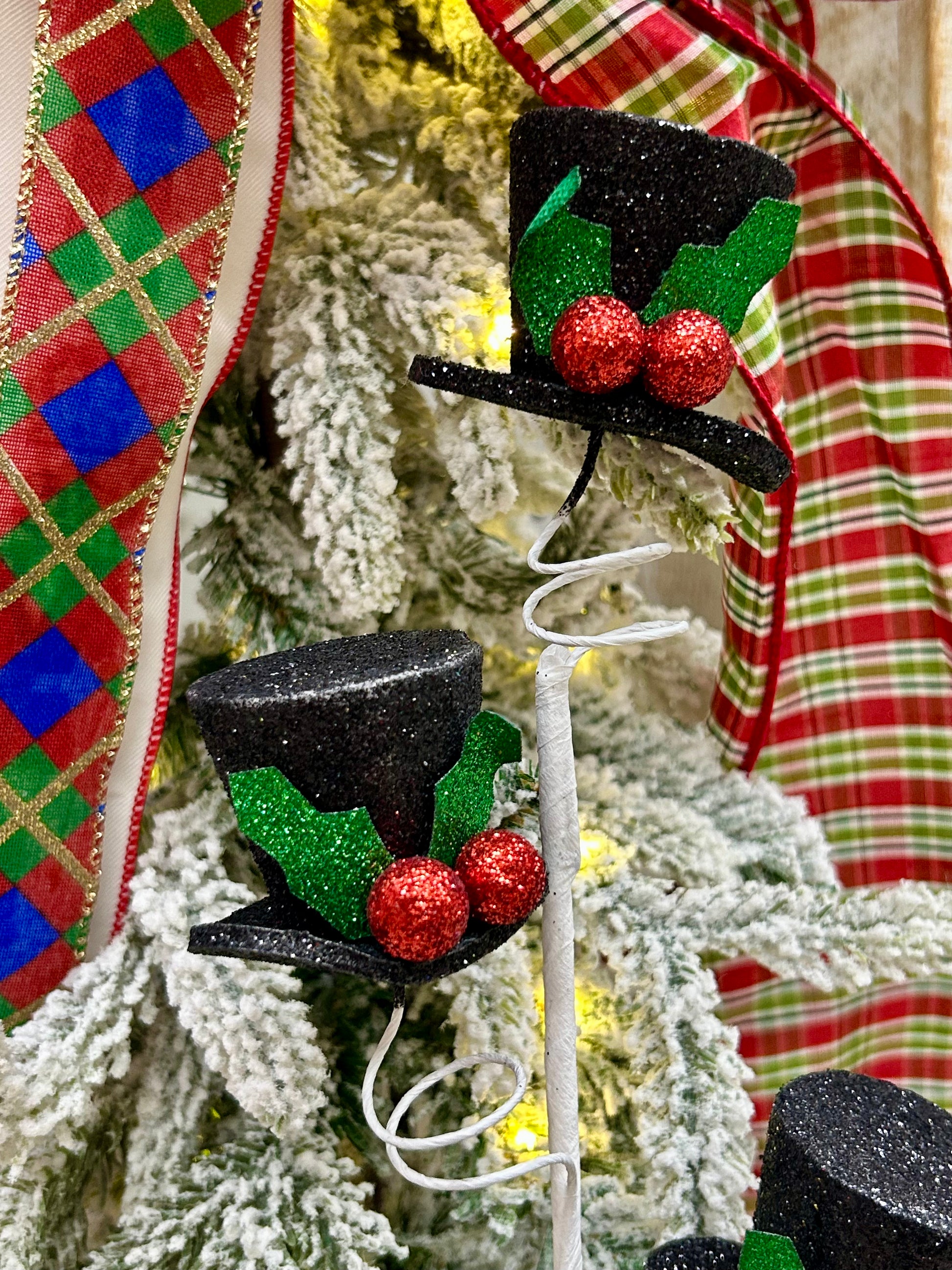 Add a festive sparkle to your holiday décor with this 22 Inch Glitter Fabric Top Hat Spray. Crafted to bring shimmering elegance, it enhances Christmas arrangements, wreaths, or centerpieces with its vibrant glitter fabric. Perfect for experts seeking to create eye-catching seasonal displays, this top hat spray offers a dazzling finish that captures the magic of the season.