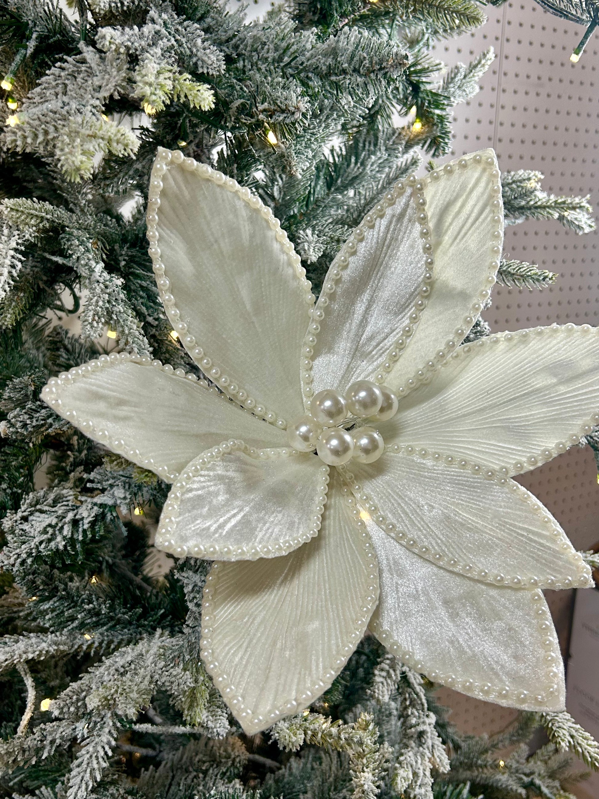 22 Inch Ivory Pearl Bead Poinsettia Pick