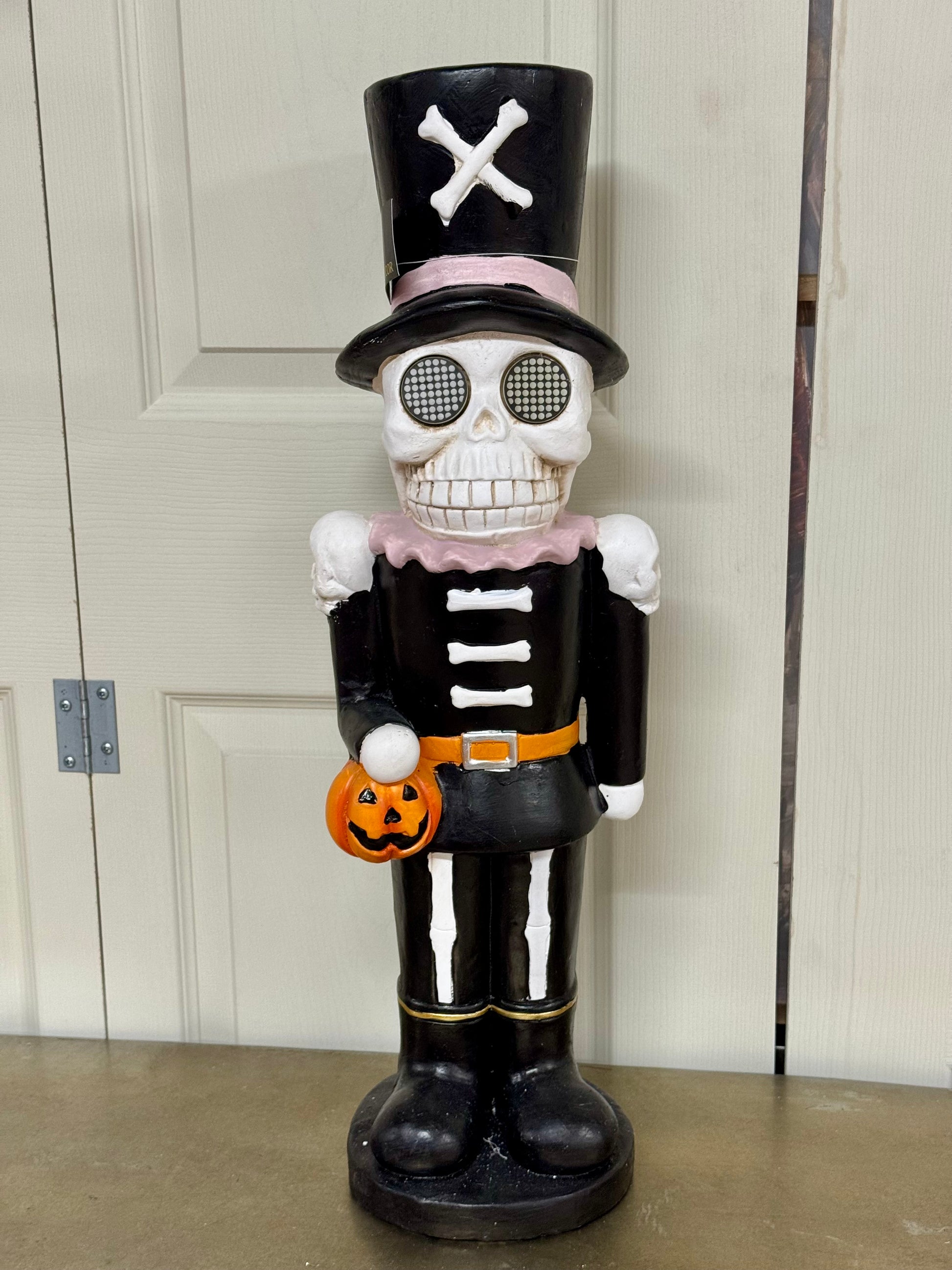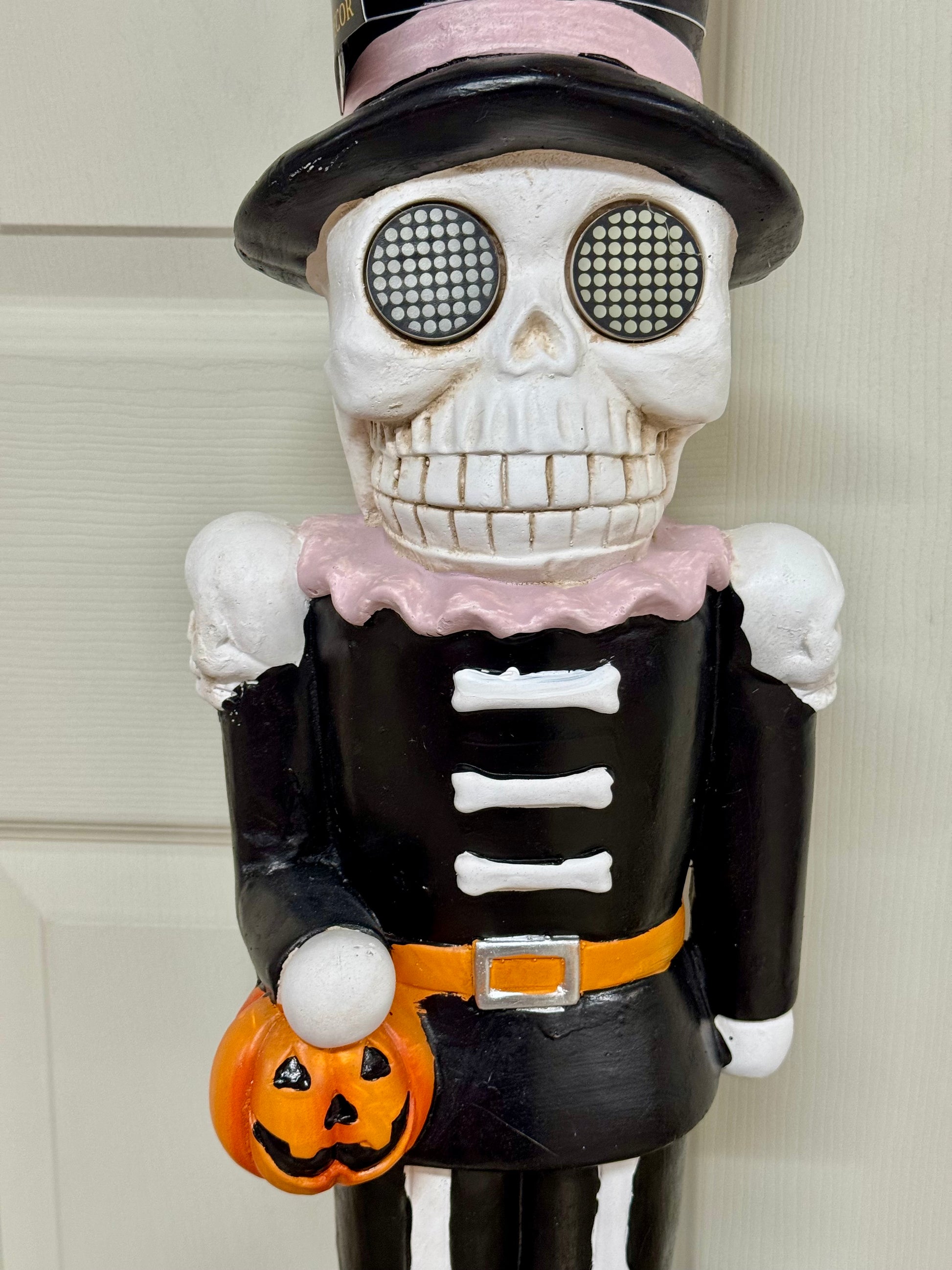 Elevate your Halloween decor with this 24 Inch Halloween Skeleton Nutcracker, expertly designed to combine classic nutcracker charm with spooky skeleton allure. Featuring detailed skeletal craftsmanship and integrated LED lights, it adds a haunting glow to your festive setup. Perfect for creating an eerie yet refined ambiance, this piece stands out as a unique centerpiece or accent in any seasonal display. Durable and eye-catching, it’s an essential addition for those seeking expert-level Halloween decoration.