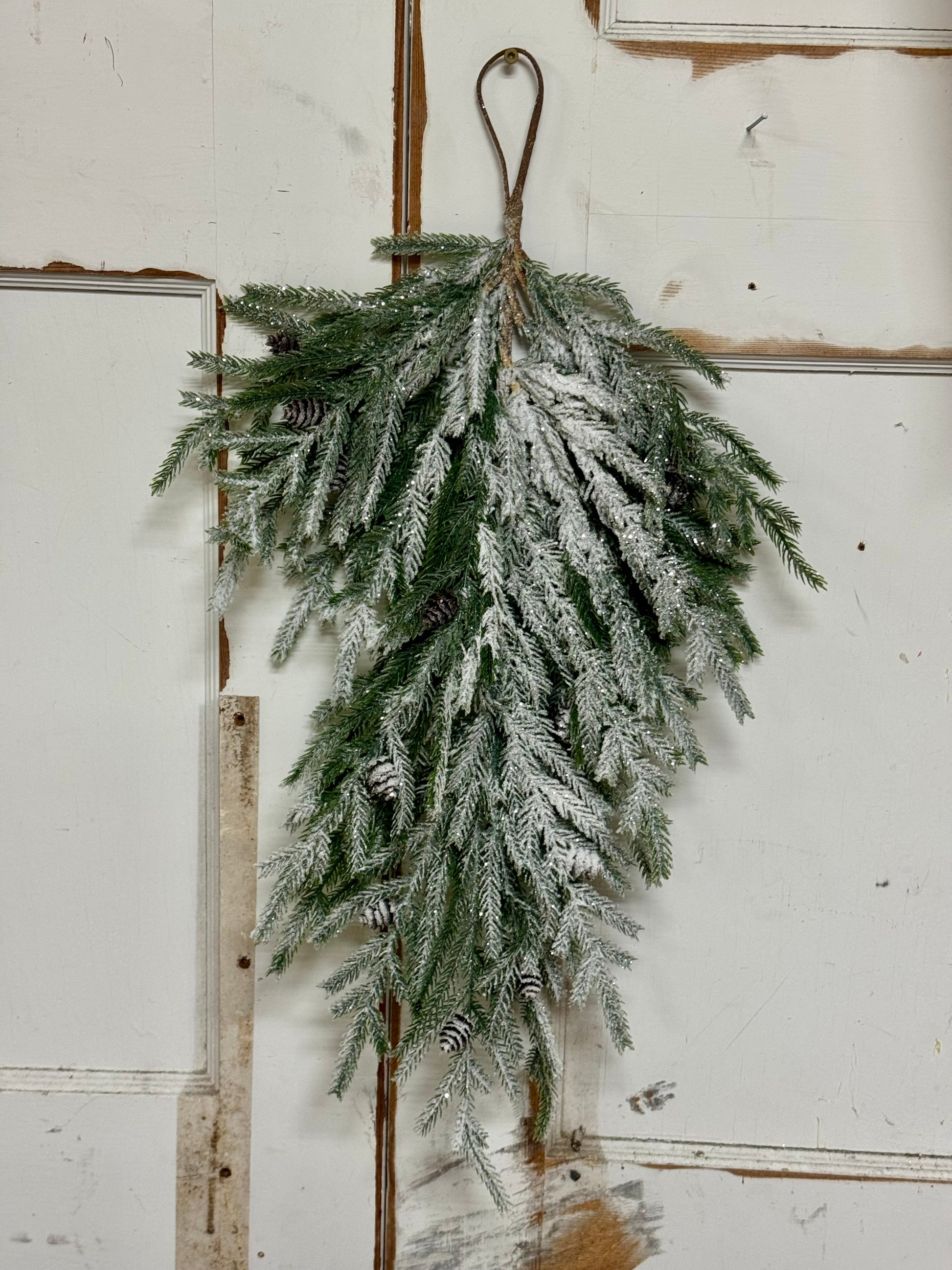26 Inch Flocked Norfolk With Pinecones Teardrop
