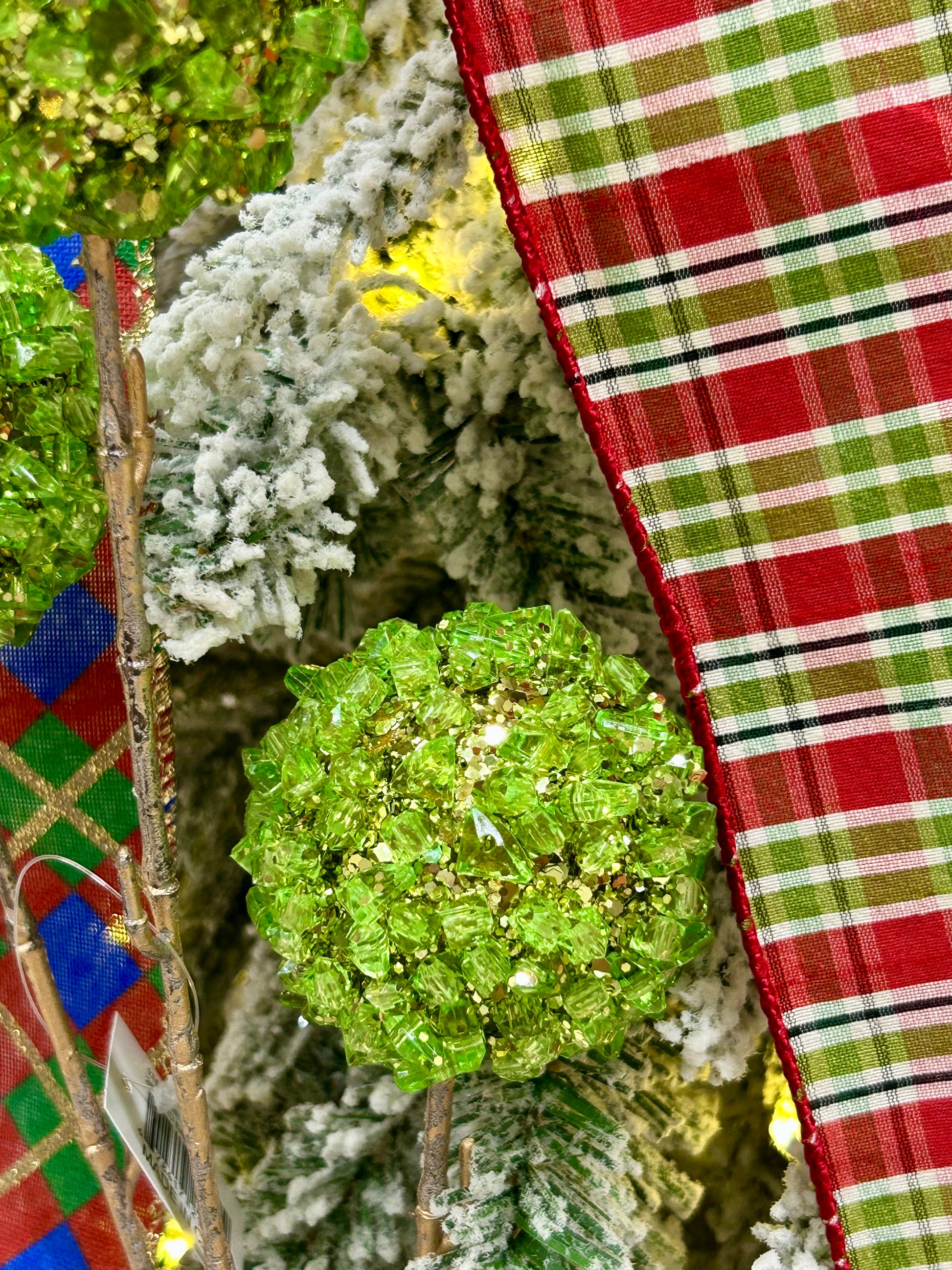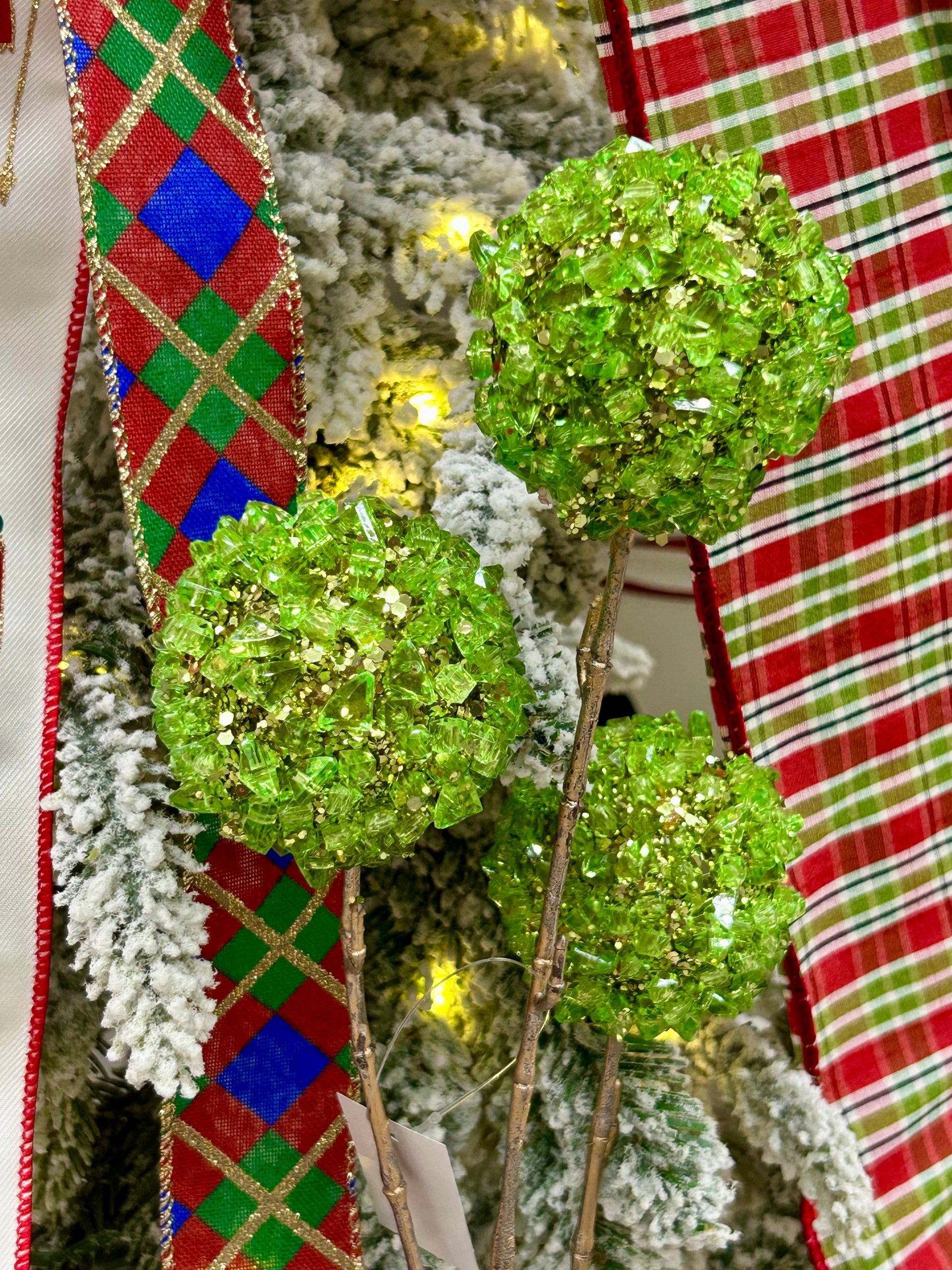 Celebrate the festive season with this 26-inch Green Ice Ball Spray, perfectly suited for St. Patrick’s Day, Christmas, or Grinch-themed décor. Featuring vibrant green hues and a frosted ice texture, it adds a cool, festive touch to wreaths, centerpieces, or holiday displays. Its versatile design enhances seasonal arrangements with a crisp, wintry feel, elevating your decorations with expert-crafted detail.