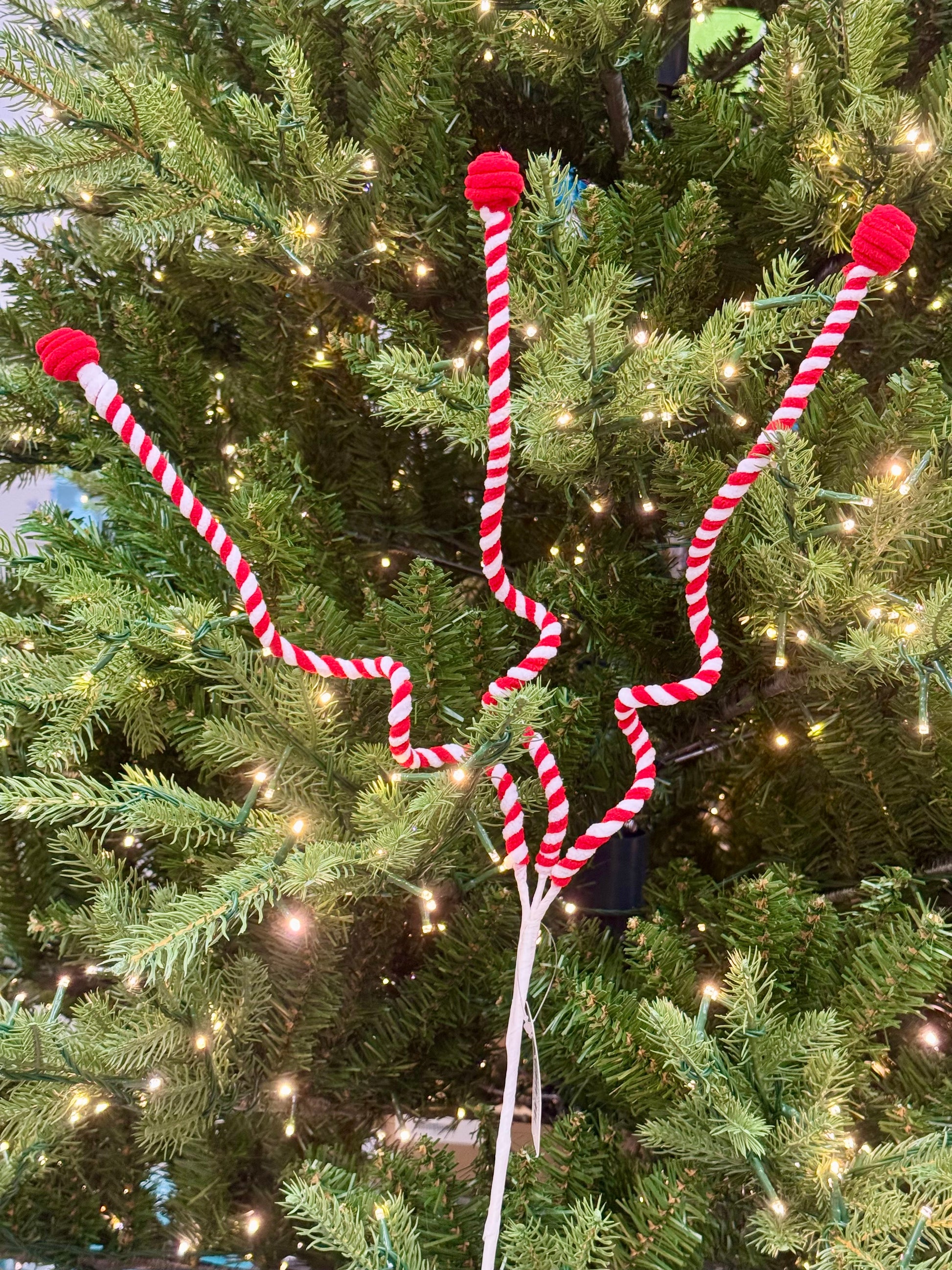 Add a festive touch to your holiday decorations with this 26-inch red and white chenille curly spray. Crafted from soft chenille, its vibrant colors and playful curls bring texture and cheer to wreaths, centerpieces, or mantel displays. Perfect for enhancing Christmas décor with a classic yet dynamic accent.