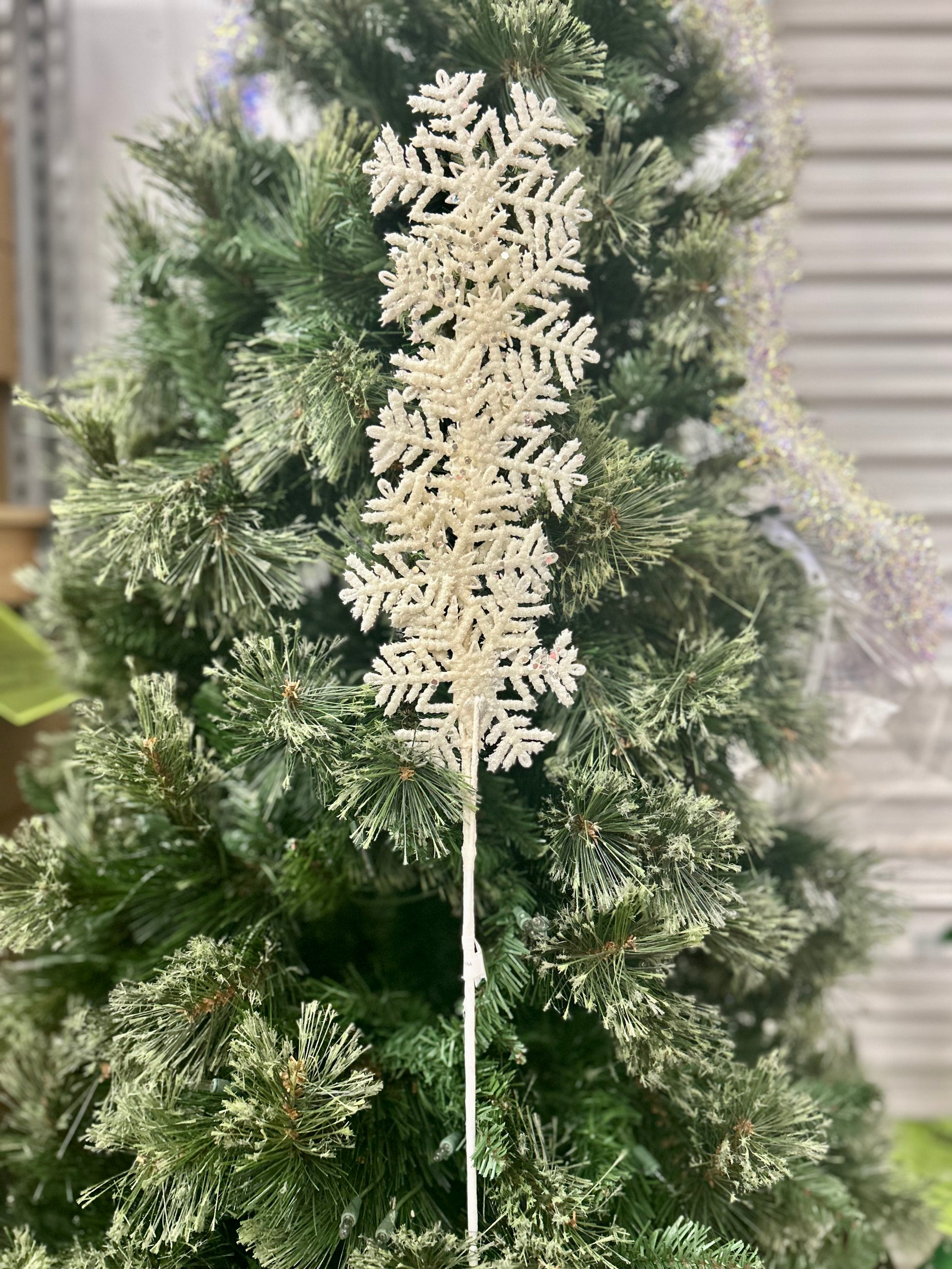 Enhance your holiday décor with this 27-inch Glittered Snowflake Spray. Expertly crafted, it features shimmering glitter that adds a festive sparkle to any arrangement or wreath. Its generous size makes it a striking accent for Christmas trees, centerpieces, or mantel displays, bringing a touch of winter elegance to your seasonal decorations.