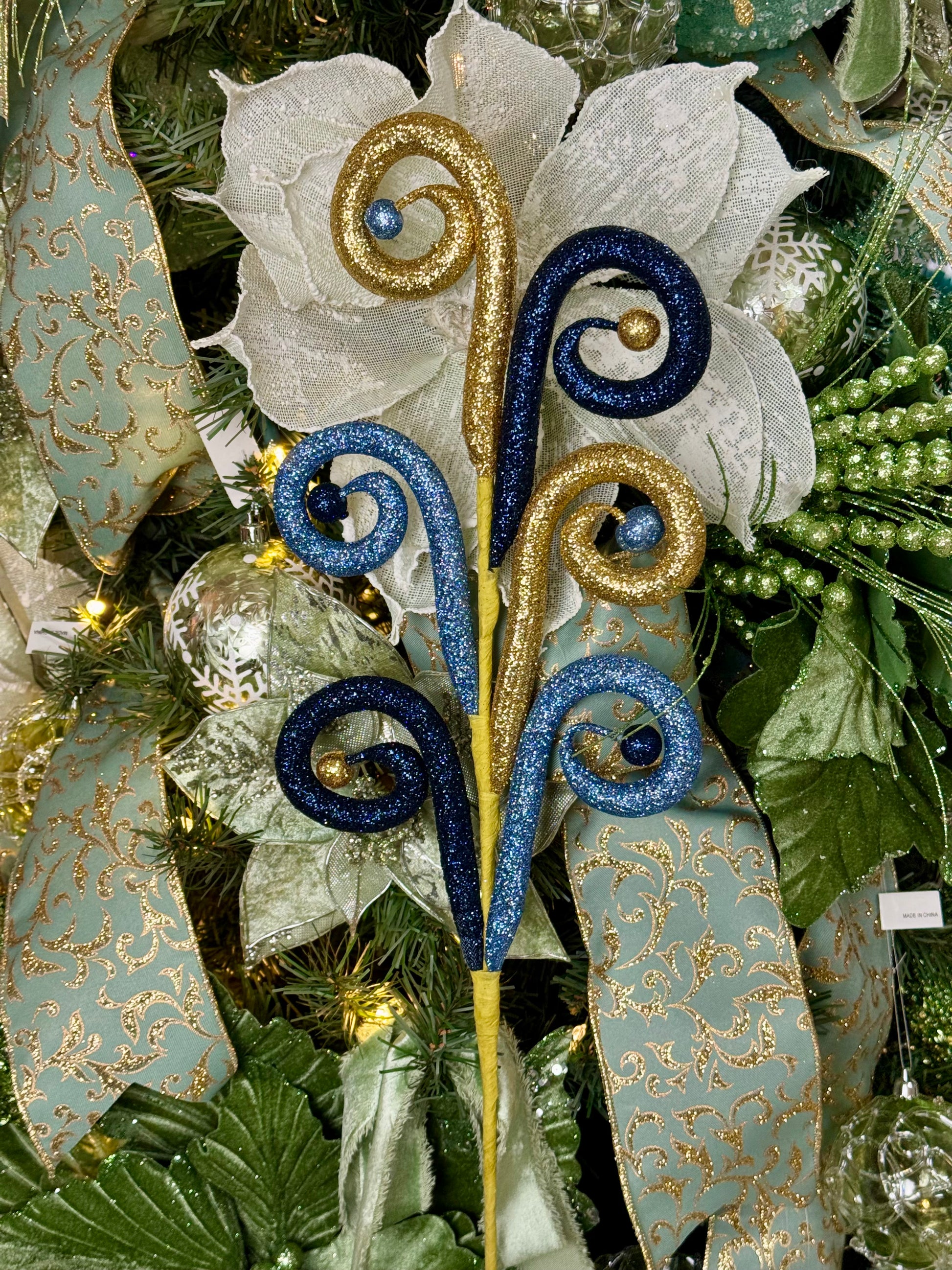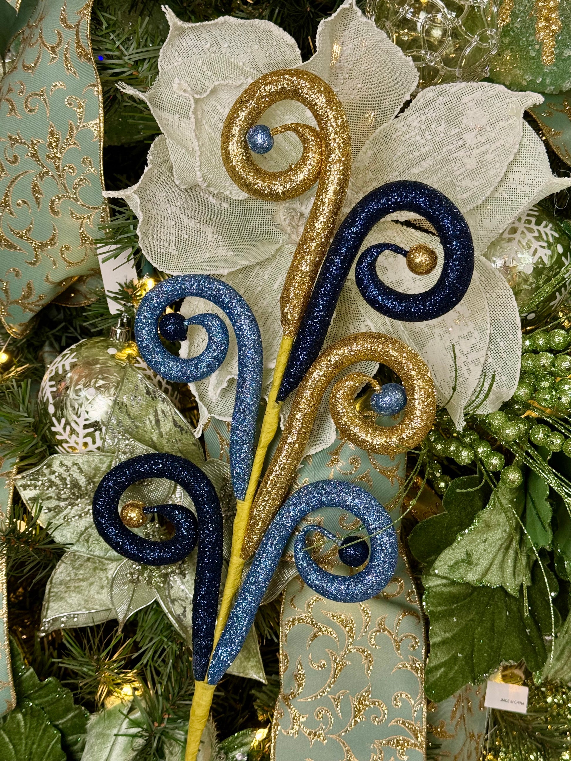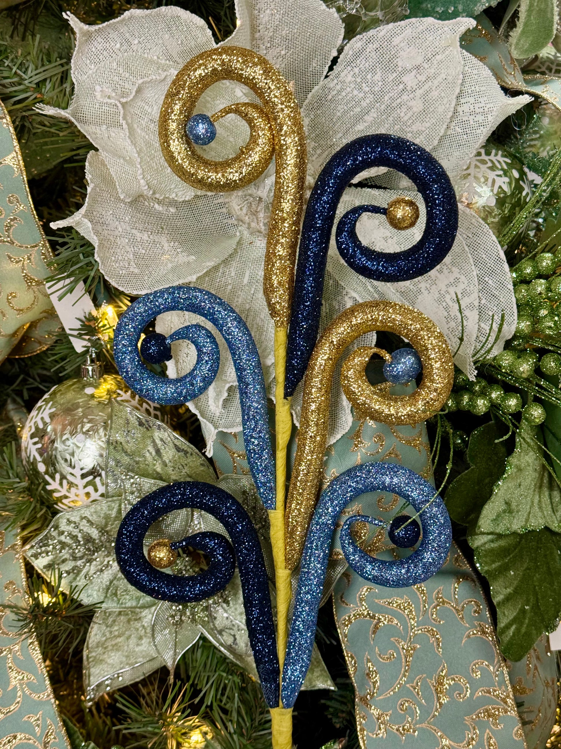 28.5 Inch Navy Smoke Blue And Gold Glitter Tubing Ball Spray