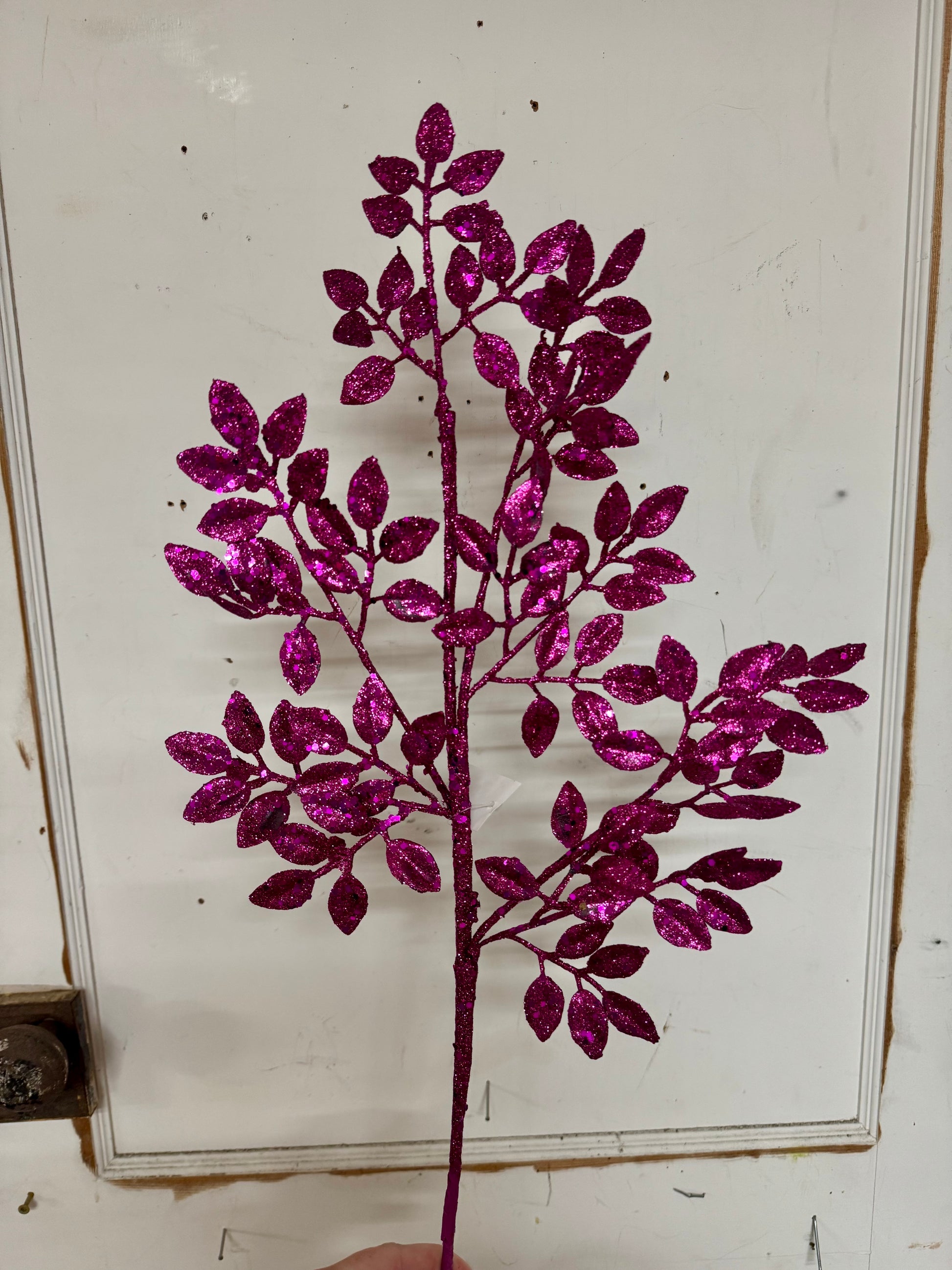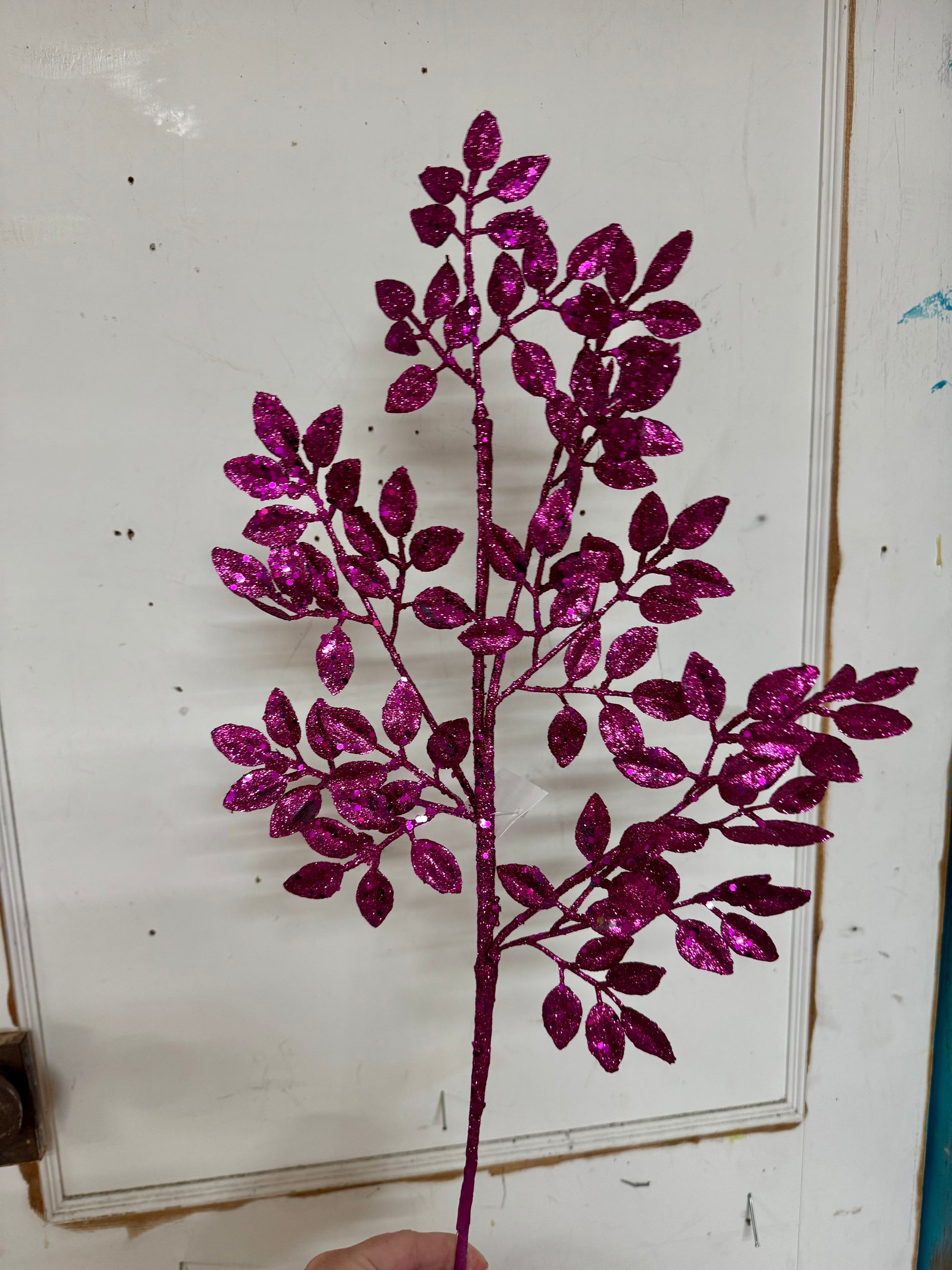 - Fuchsia Glitter Leaf Spray