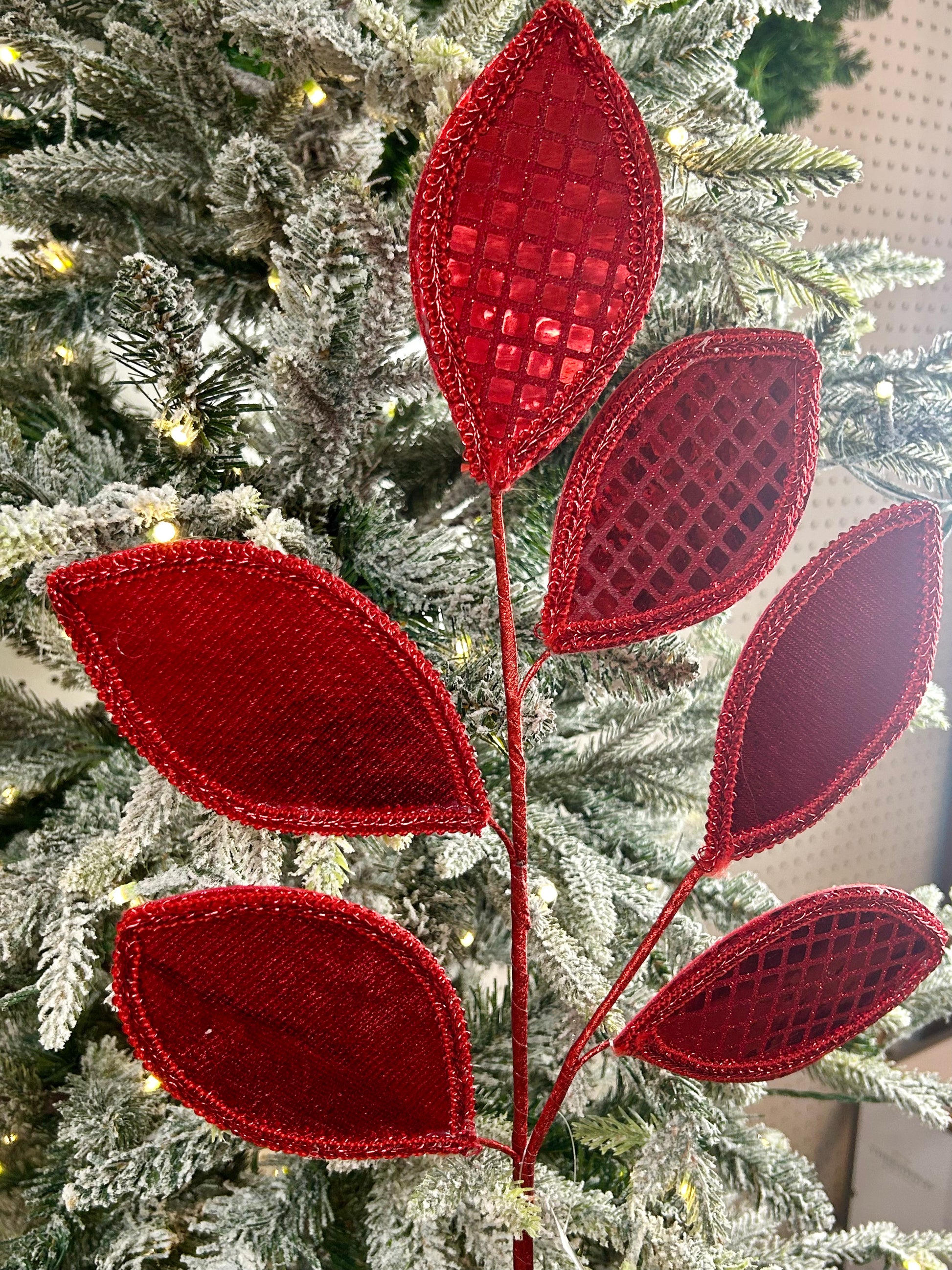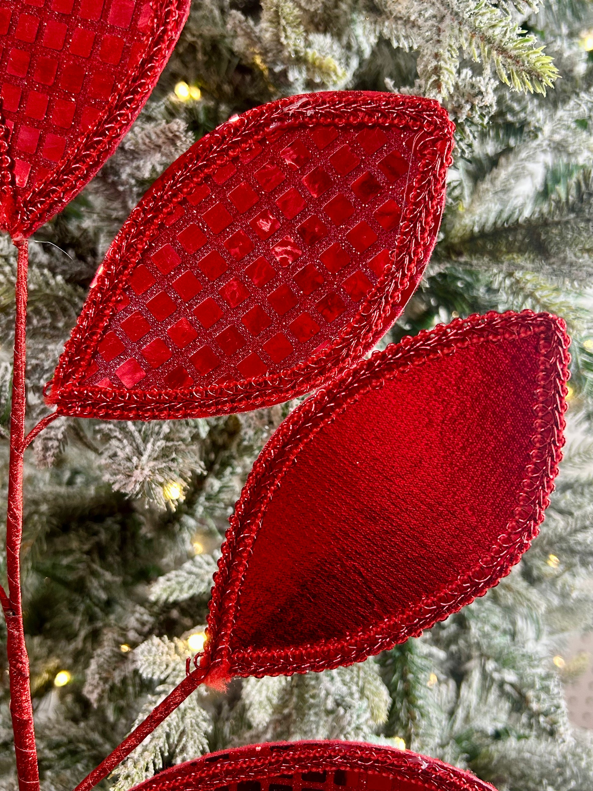 28 Inch Red Square Sequin Glitter Leaf Spray