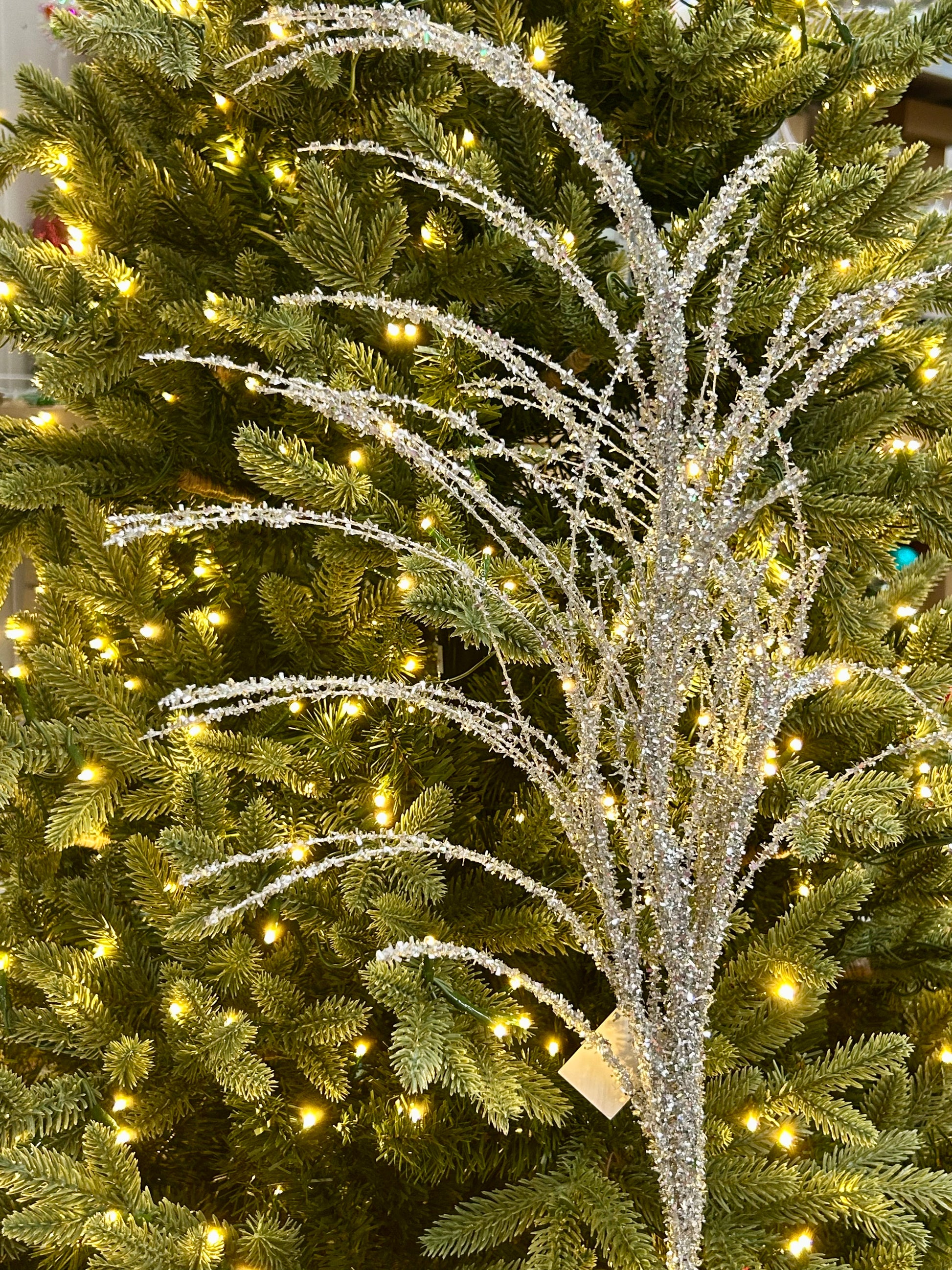 Elevate your festive décor with the 32 Inch Silver Pine Glitter Spray, expertly designed for both Mardi Gras and Christmas celebrations. This elegant spray features sparkling silver glitter that adds a touch of shimmer and sophistication to wreaths, centerpieces, and floral arrangements. Its ample length allows for versatile placement, making it perfect for enhancing any seasonal display with a refined, festive glow. Crafted to bring expert-level detail and brilliance, this spray is an essential accent for your holiday decorating needs.
