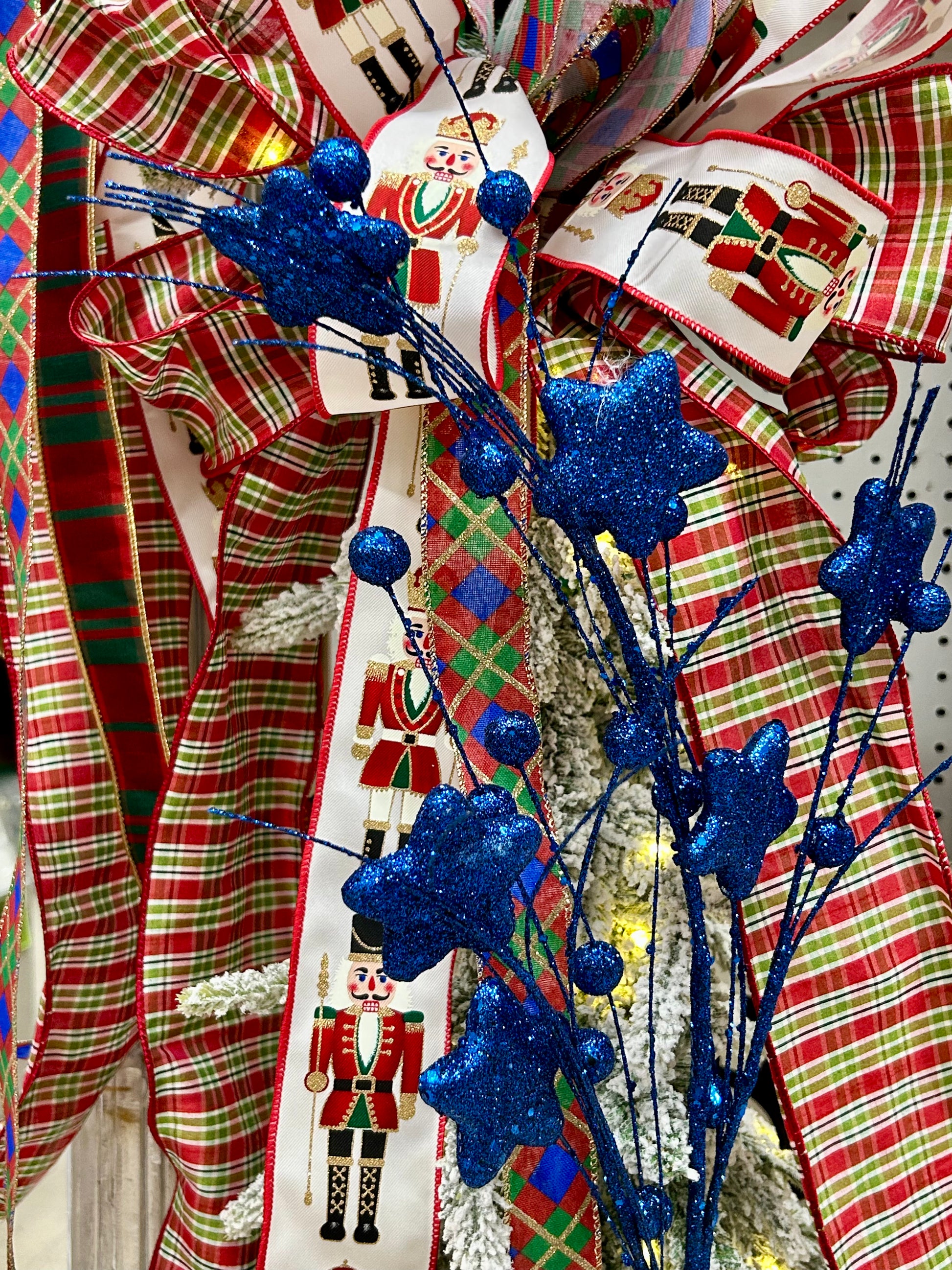 34 Inch Dark Blue Glitter Star Berry Pine Spray