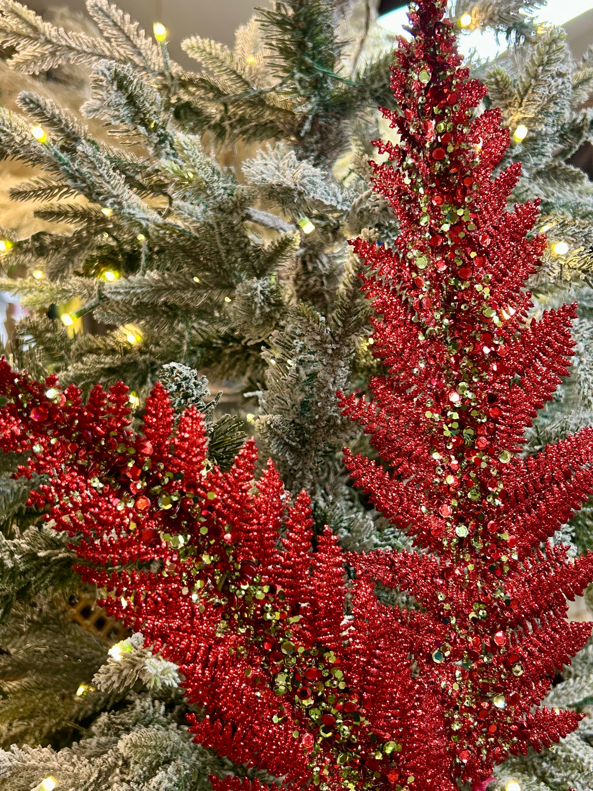 34 Inch Red And Green Jumbo Glitter Sequin Fern