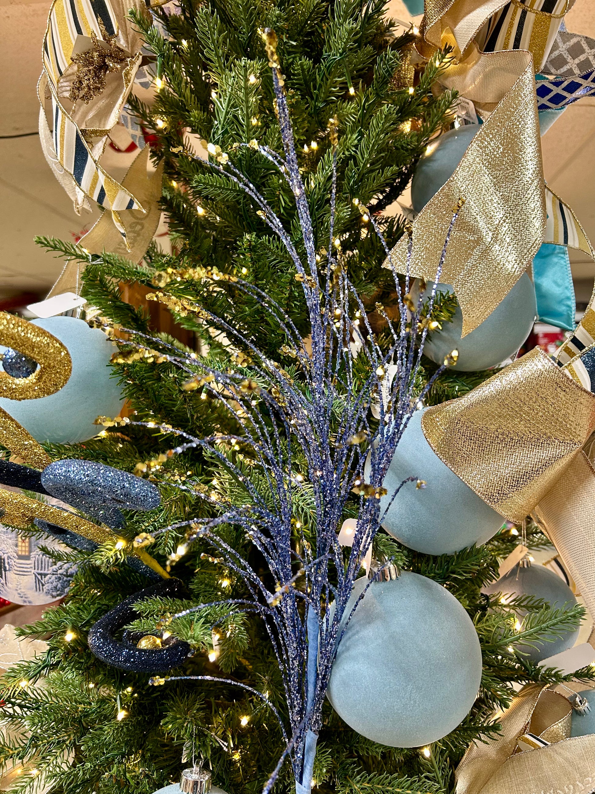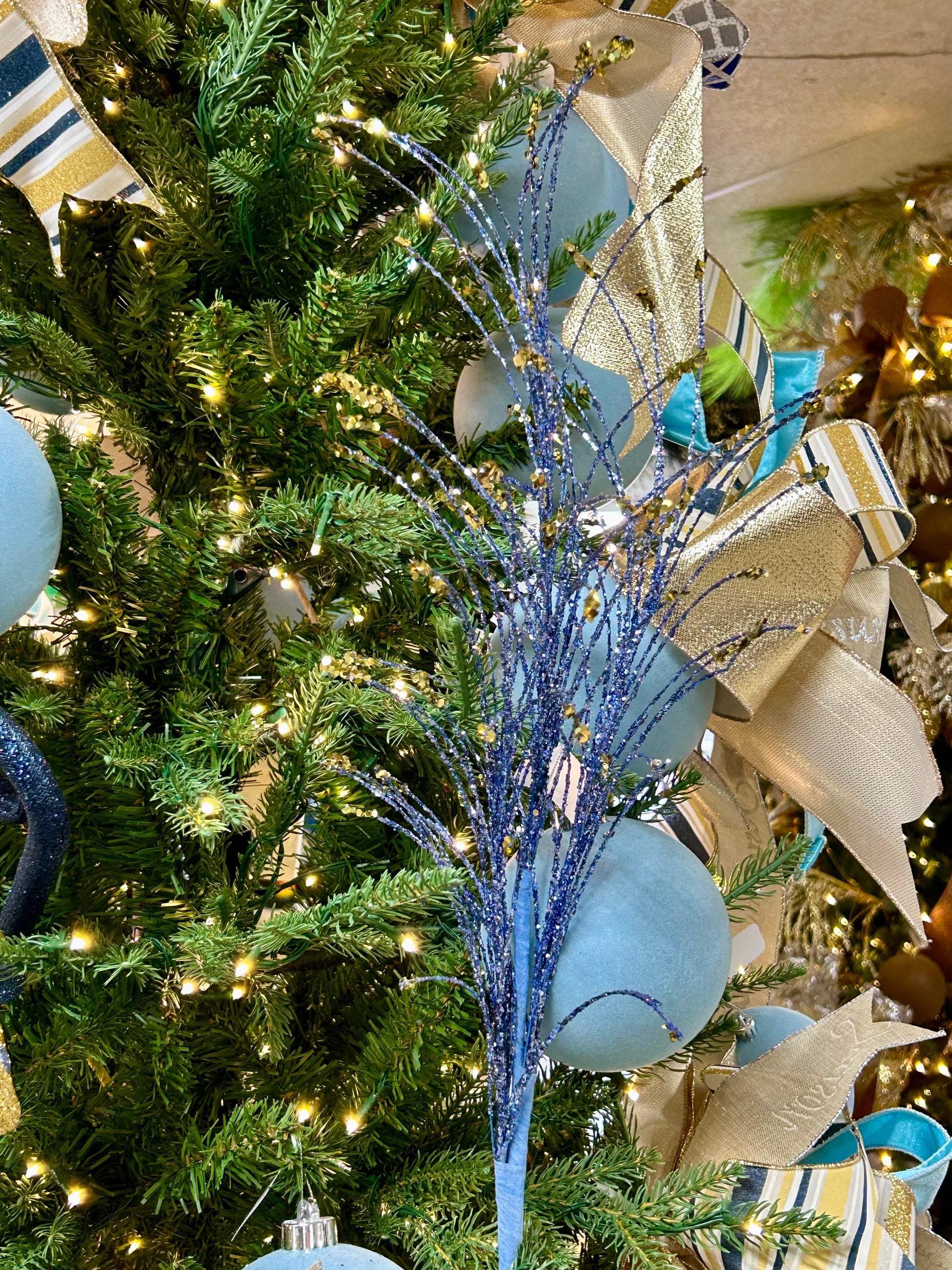 Elevate your holiday décor with the 35 Inch Smoke Blue Glitter Fishline Spray. This shimmering spray features delicate fishline strands dusted with blue glitter, adding sophisticated sparkle and texture to wreaths, garlands, or centerpieces. Its substantial 35-inch length allows for versatile arrangement, creating eye-catching accents that enhance seasonal displays with expert finesse. Perfect for bringing a cool, shimmering touch to your Christmas decorations.