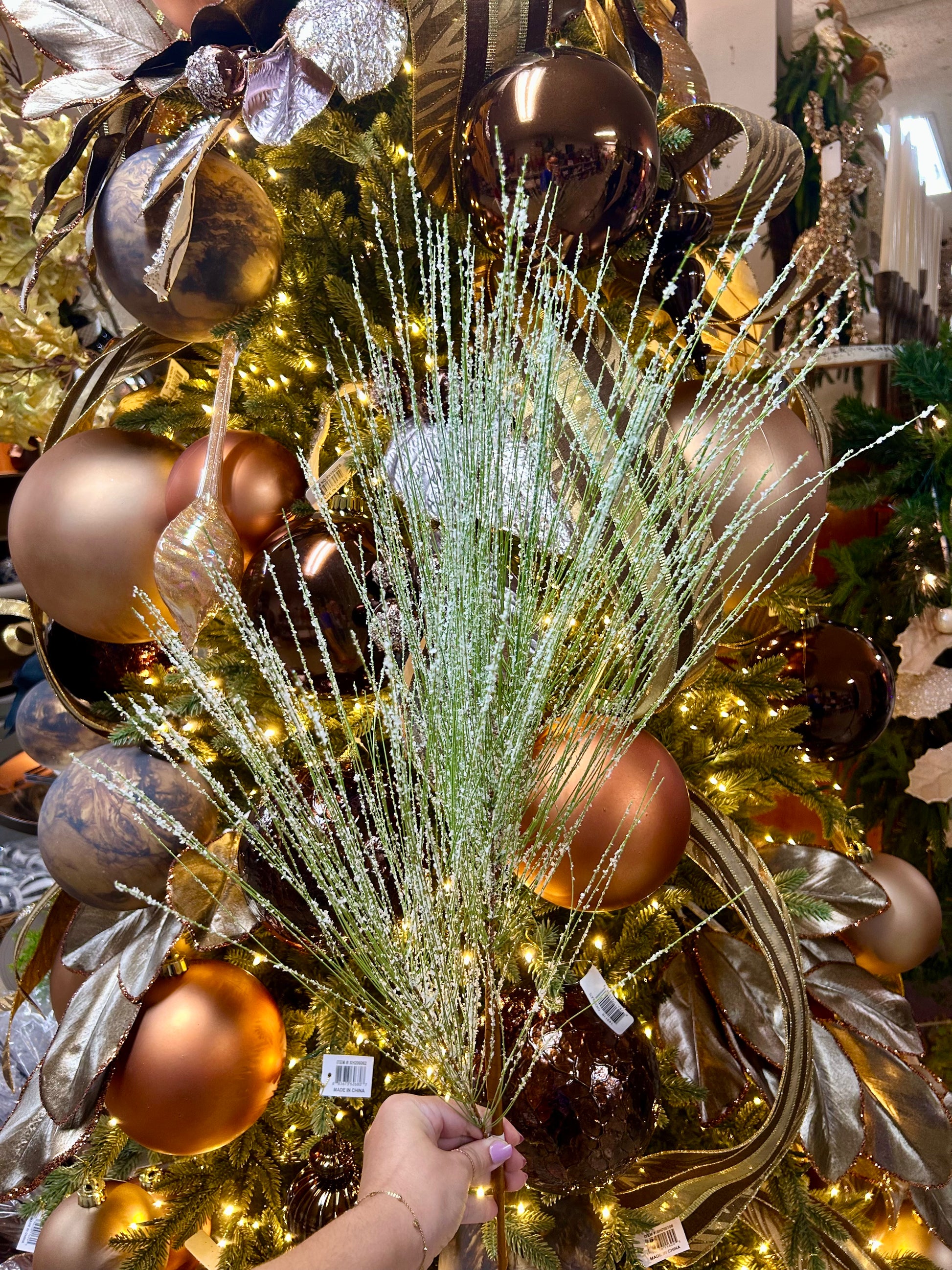 Enhance your holiday décor with this 39-inch Ice and Snow Pine Spray, expertly crafted to bring the crisp beauty of winter indoors. Featuring lifelike pine needles accented with delicate faux snow and ice effects, it adds a natural, wintry touch to wreaths, garlands, and centerpieces. Its ample length and realistic texture make it ideal for creating festive arrangements that evoke the serene charm of a snowy forest. Durable and easy to shape, this pine spray is a professional choice for sophisticated seasonal decorations.