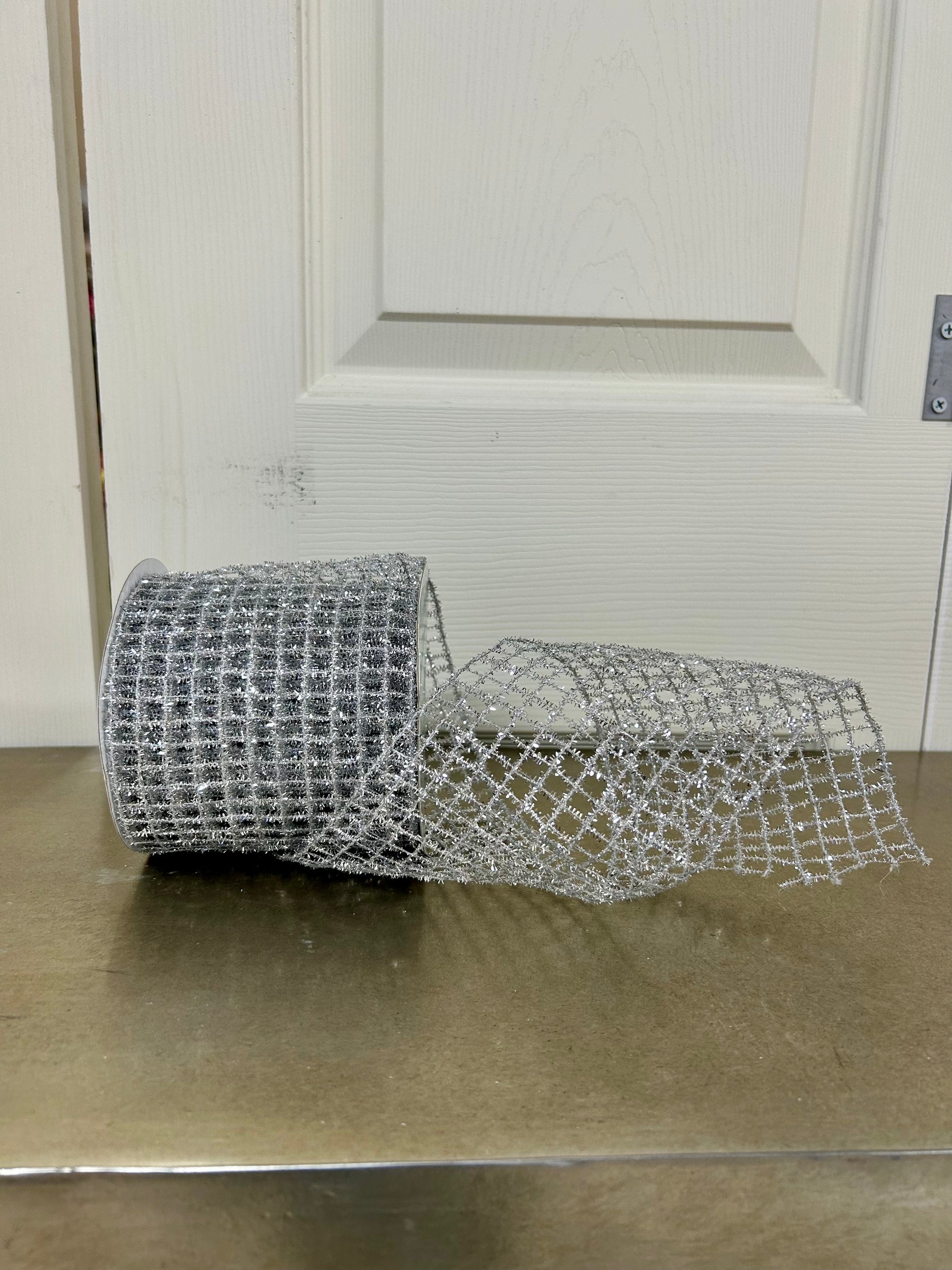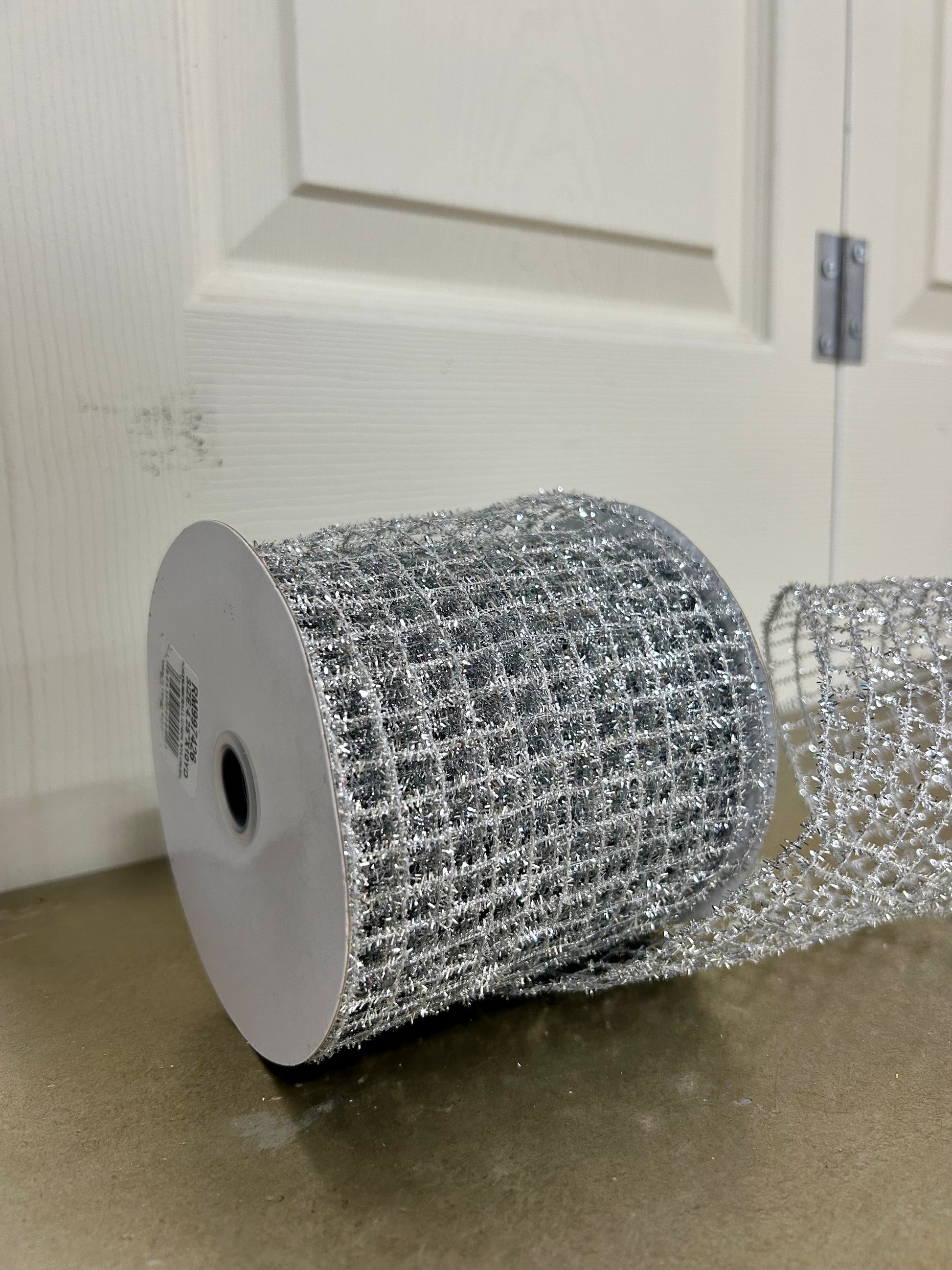 4.25 Inch By 10 Yard Silver Tinsel Mesh Ribbon