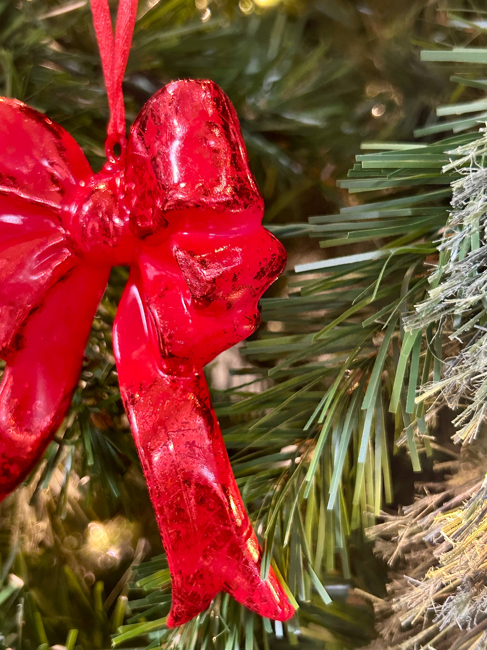 4.25 Red Plastic Hanging Bow Ornament