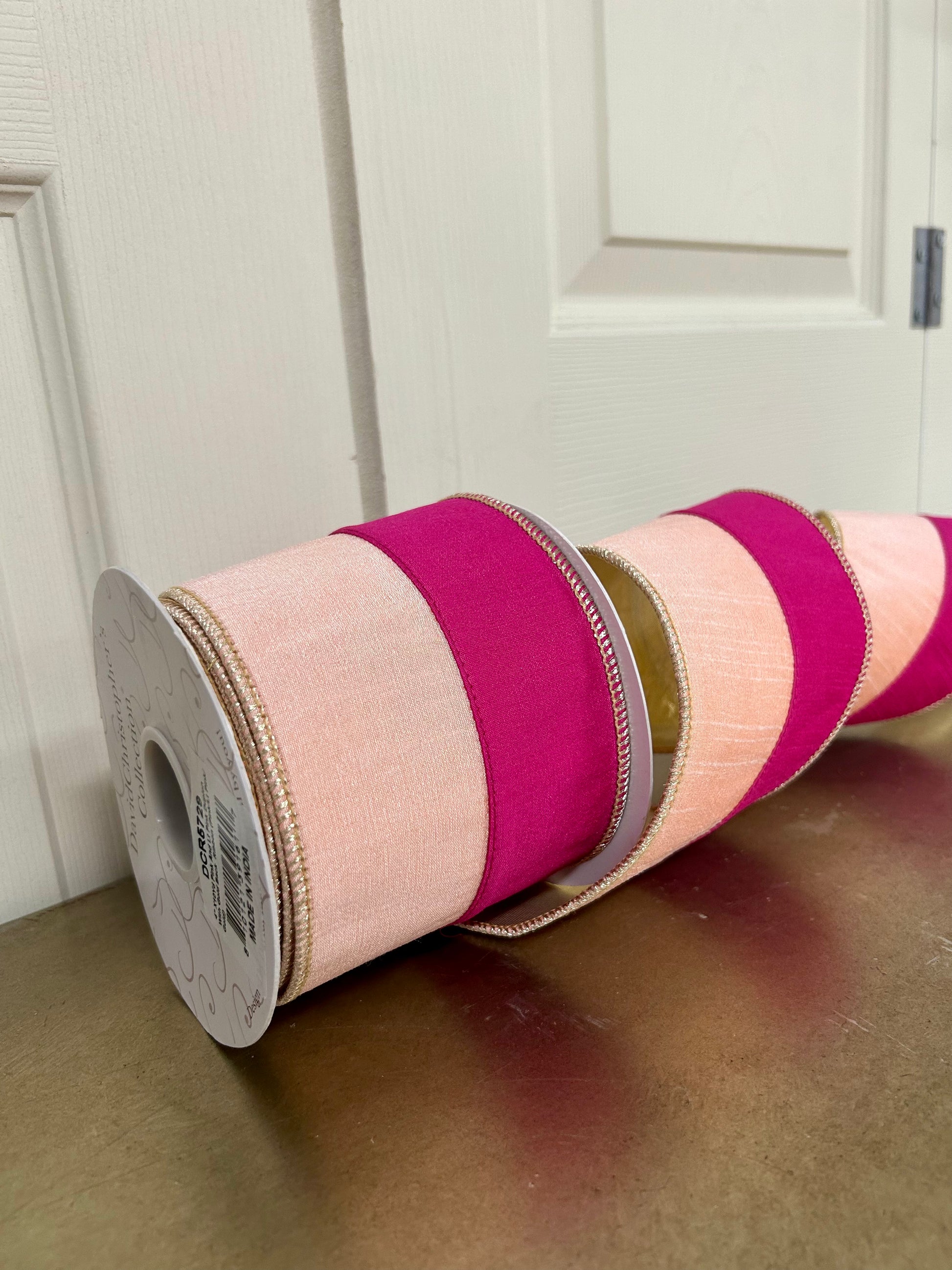 4 Inch By 10 Yard Pink And Light Pink With Gold Back Dupioni Ribbon