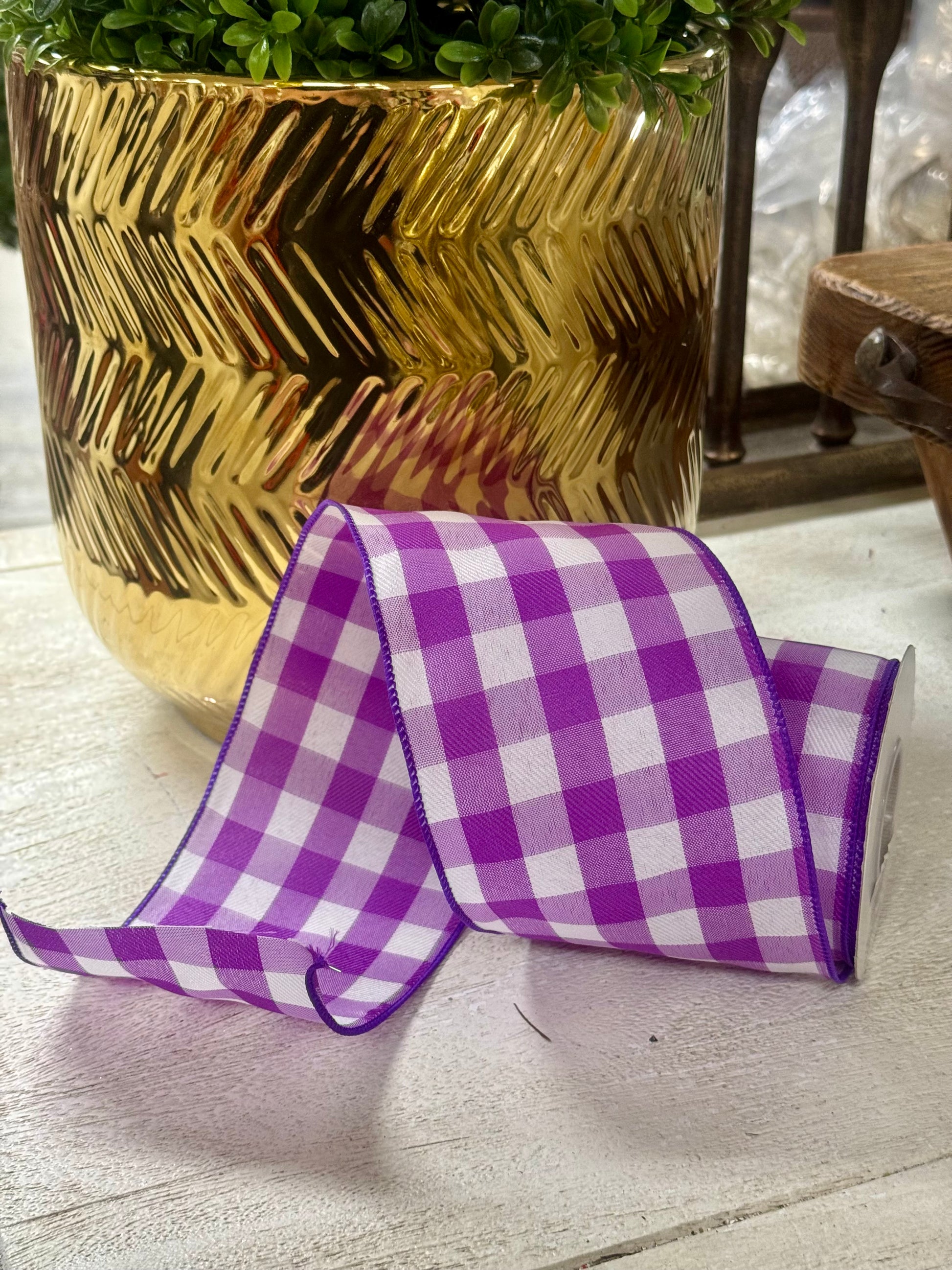 4 Inch By 10 Yard Purple And White Celine Check Plaid Ribbon