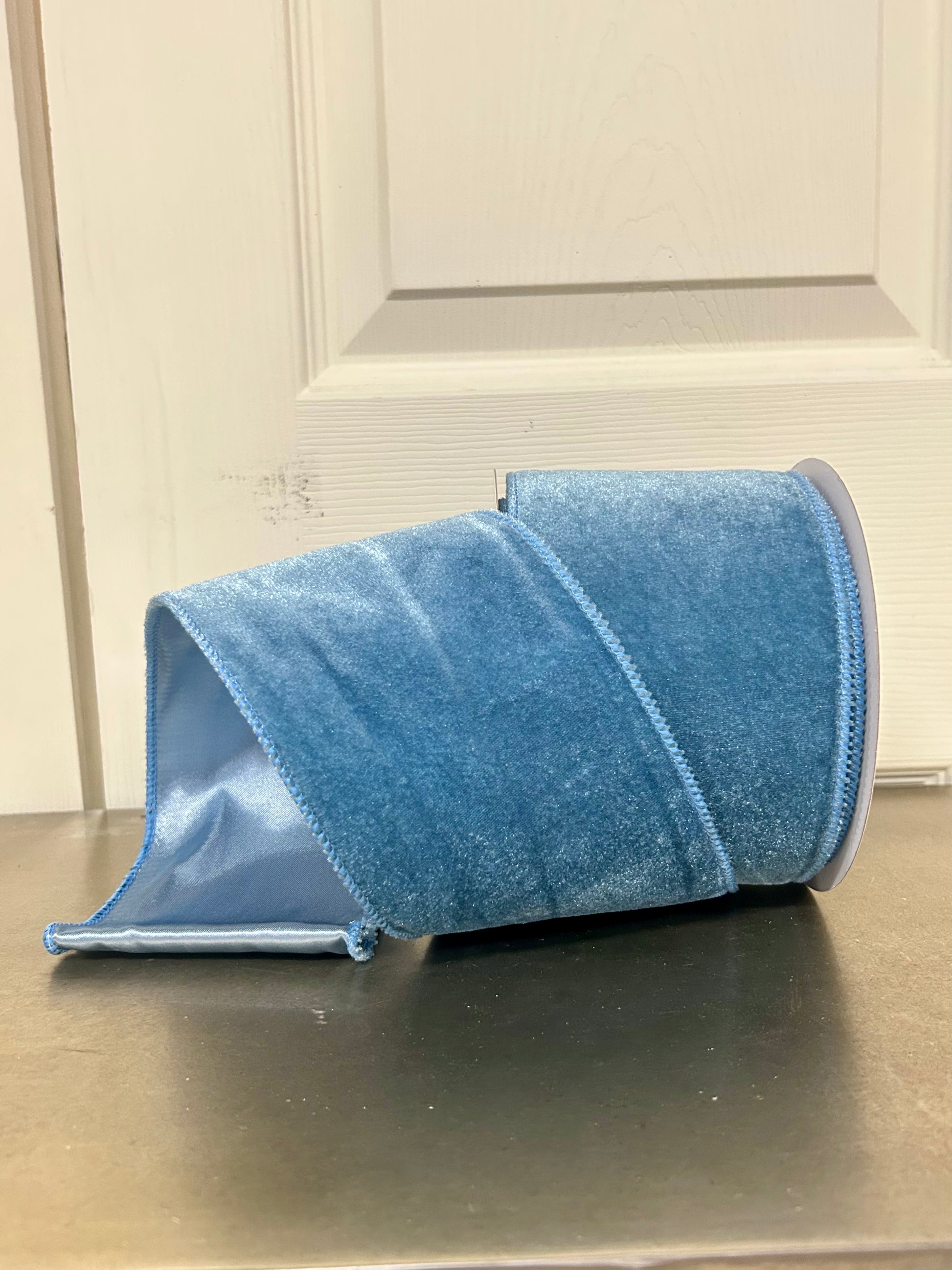 4 Inch By 10 Yard Smoke Blue Deluxe Velvet With Satin Backing Ribbon