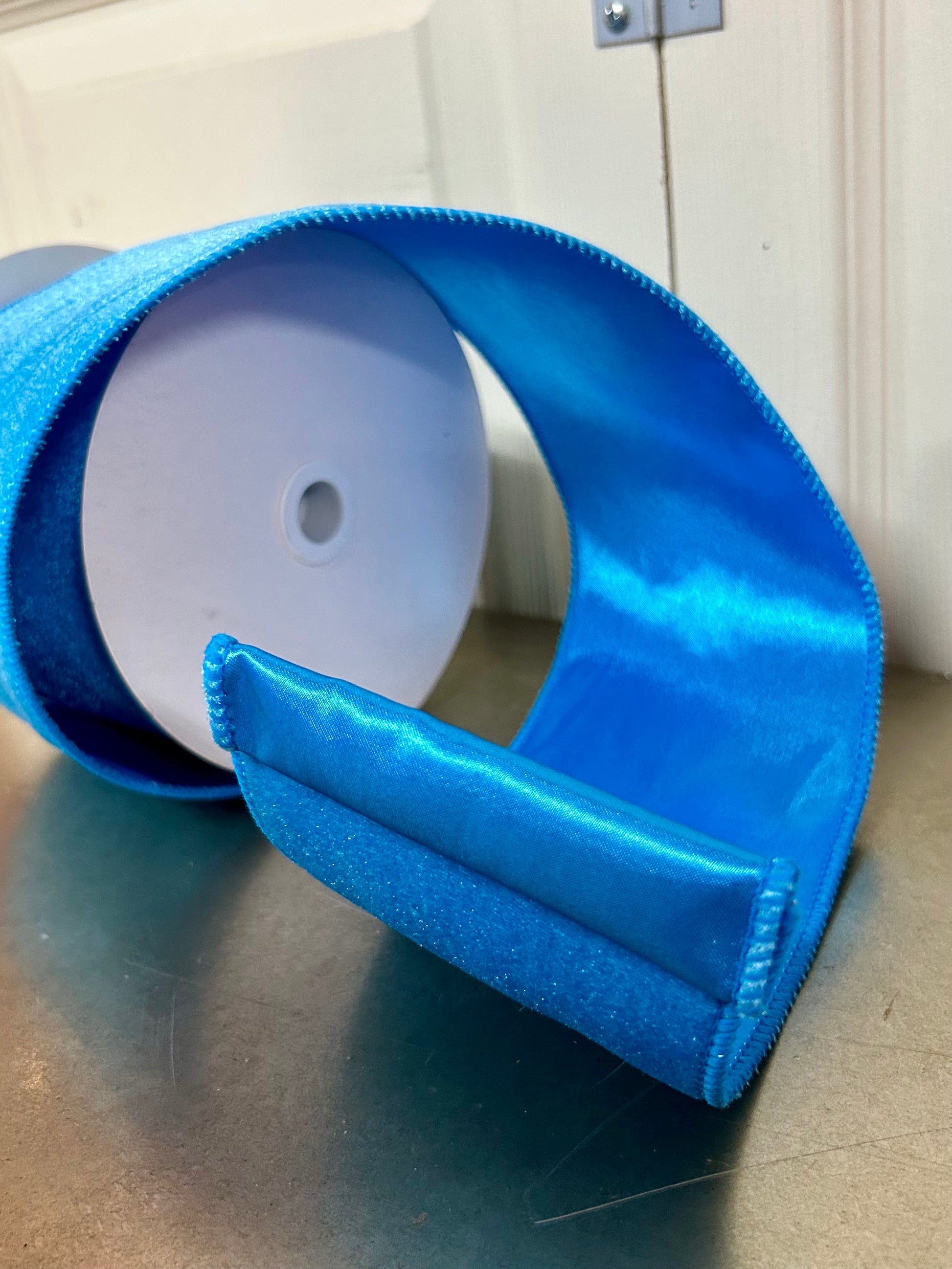 4 Inch By 10 Yard Turquoise Deluxe Velvet With Satin Backing Ribbon