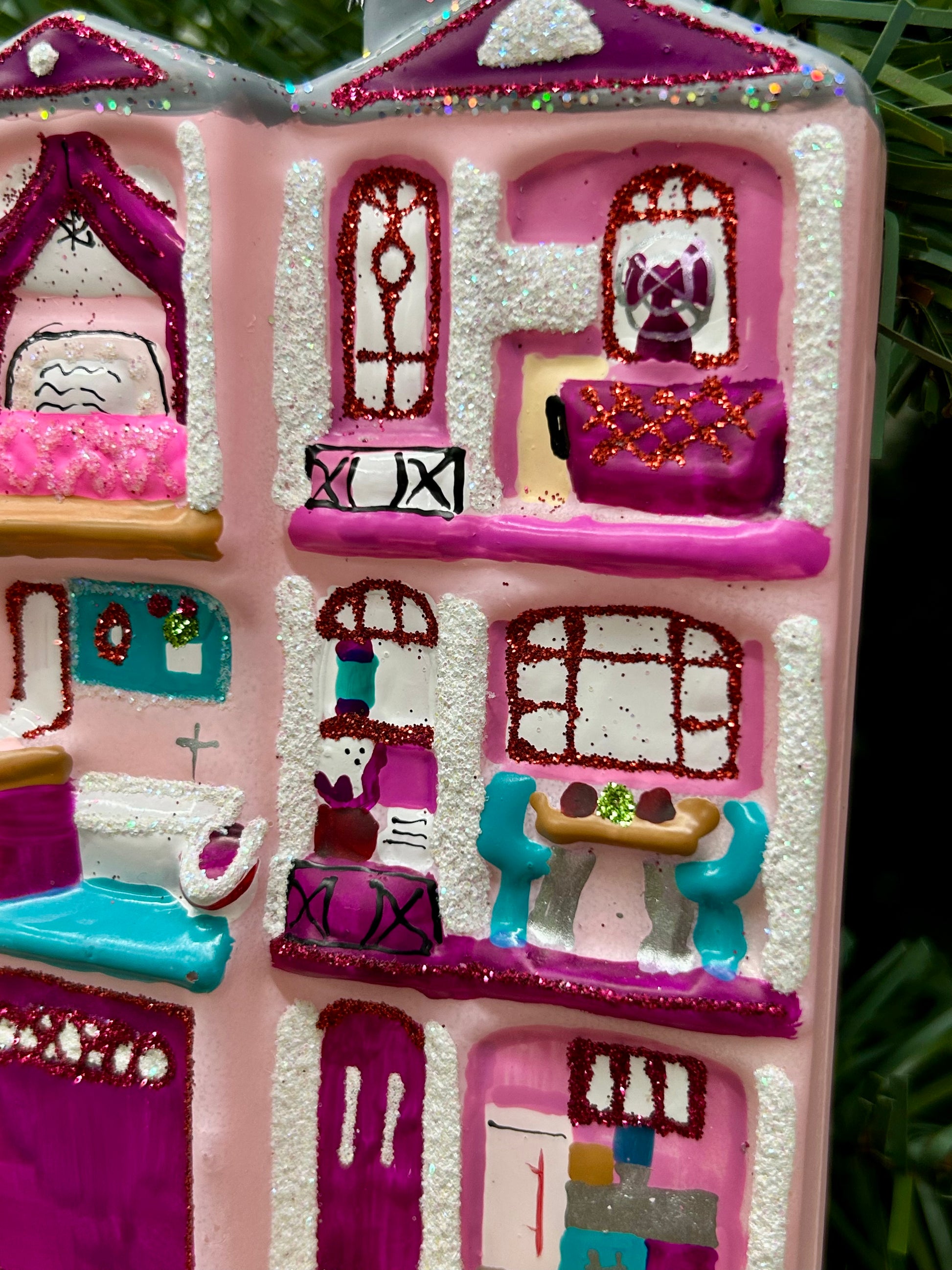 4 Inch Pink Dollhouse Glass Ornament