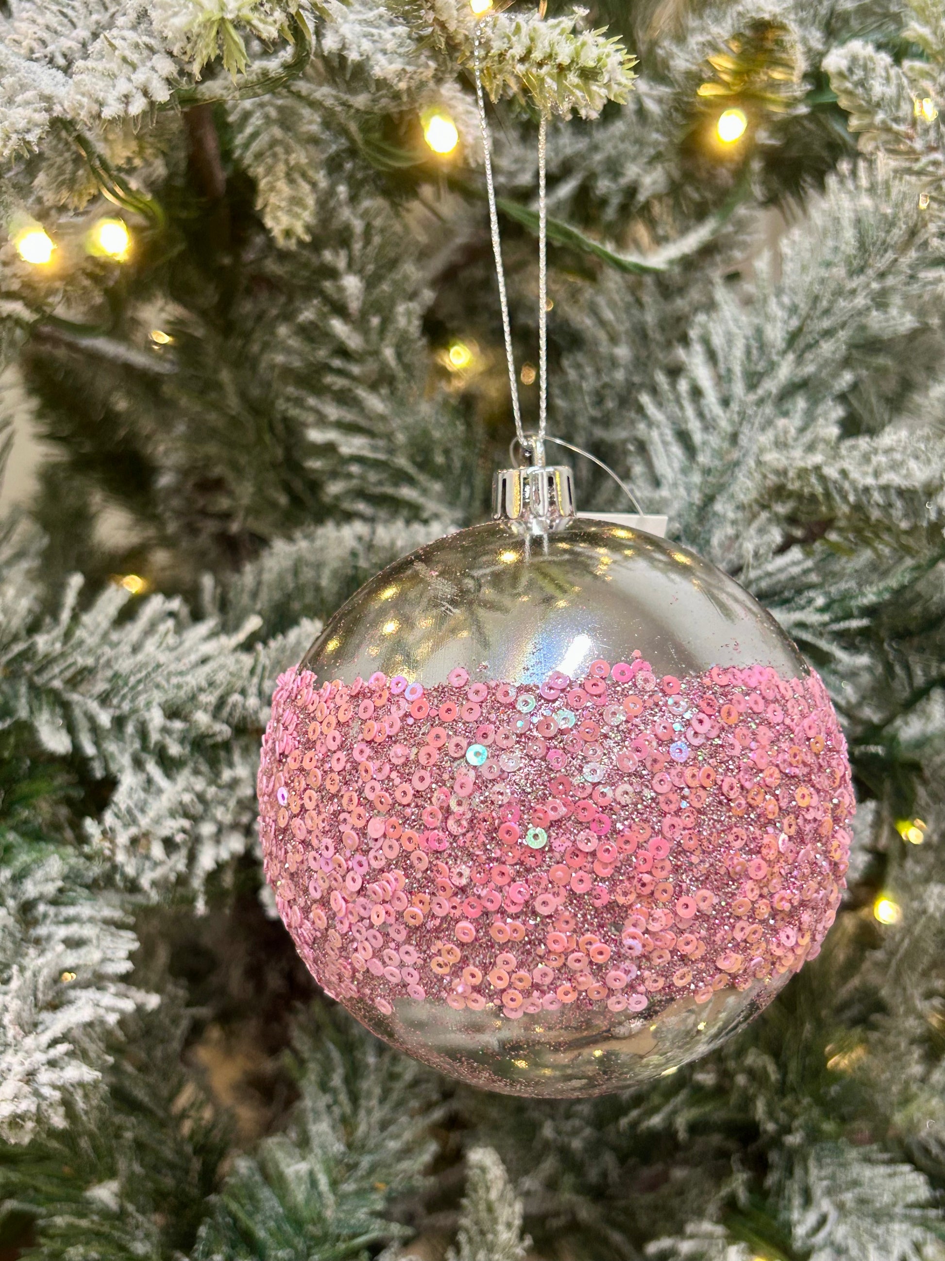 4 Inch Pink Sequin Ball Ornament