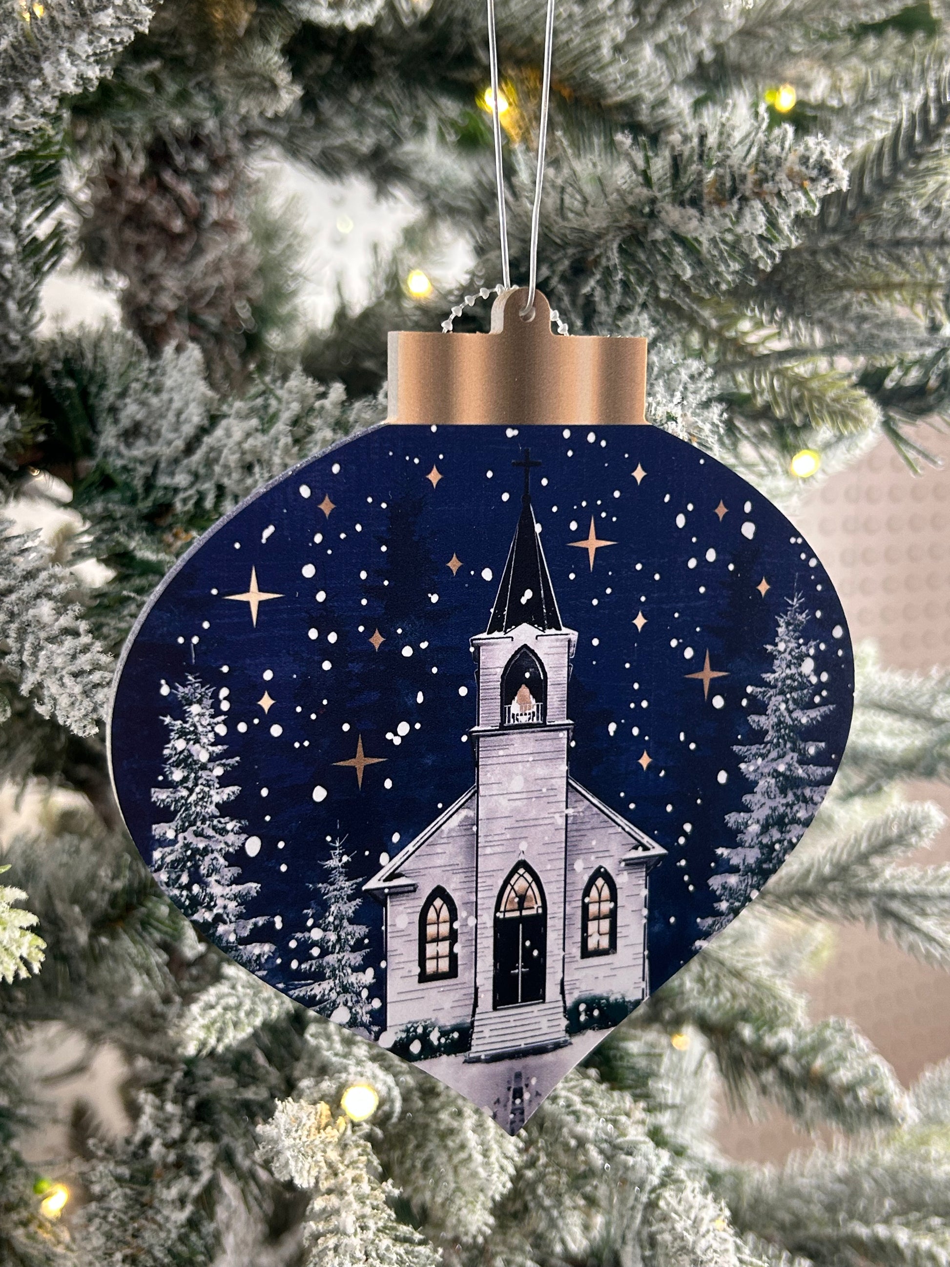 5.5 Inch Double Sided Winter Church Ornament Two Styles