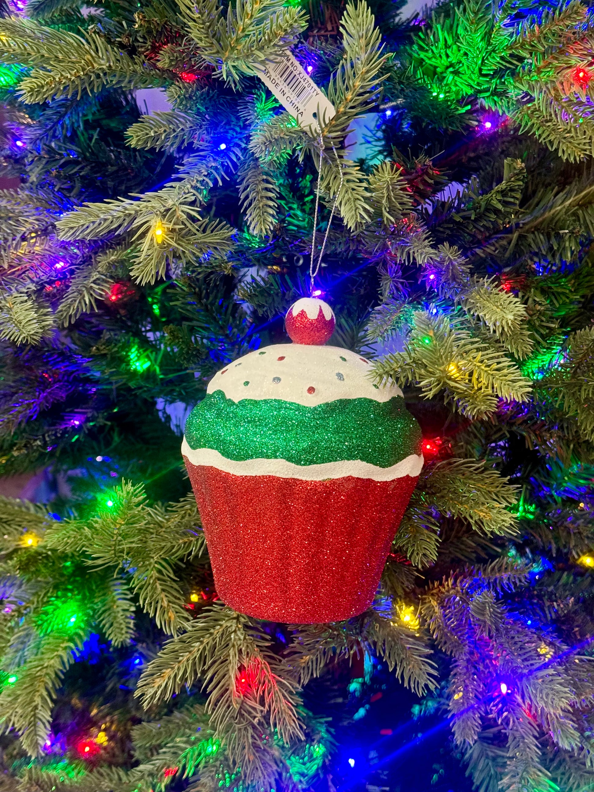 5.5 Inch Red Green Glitter Cupcake Ornament