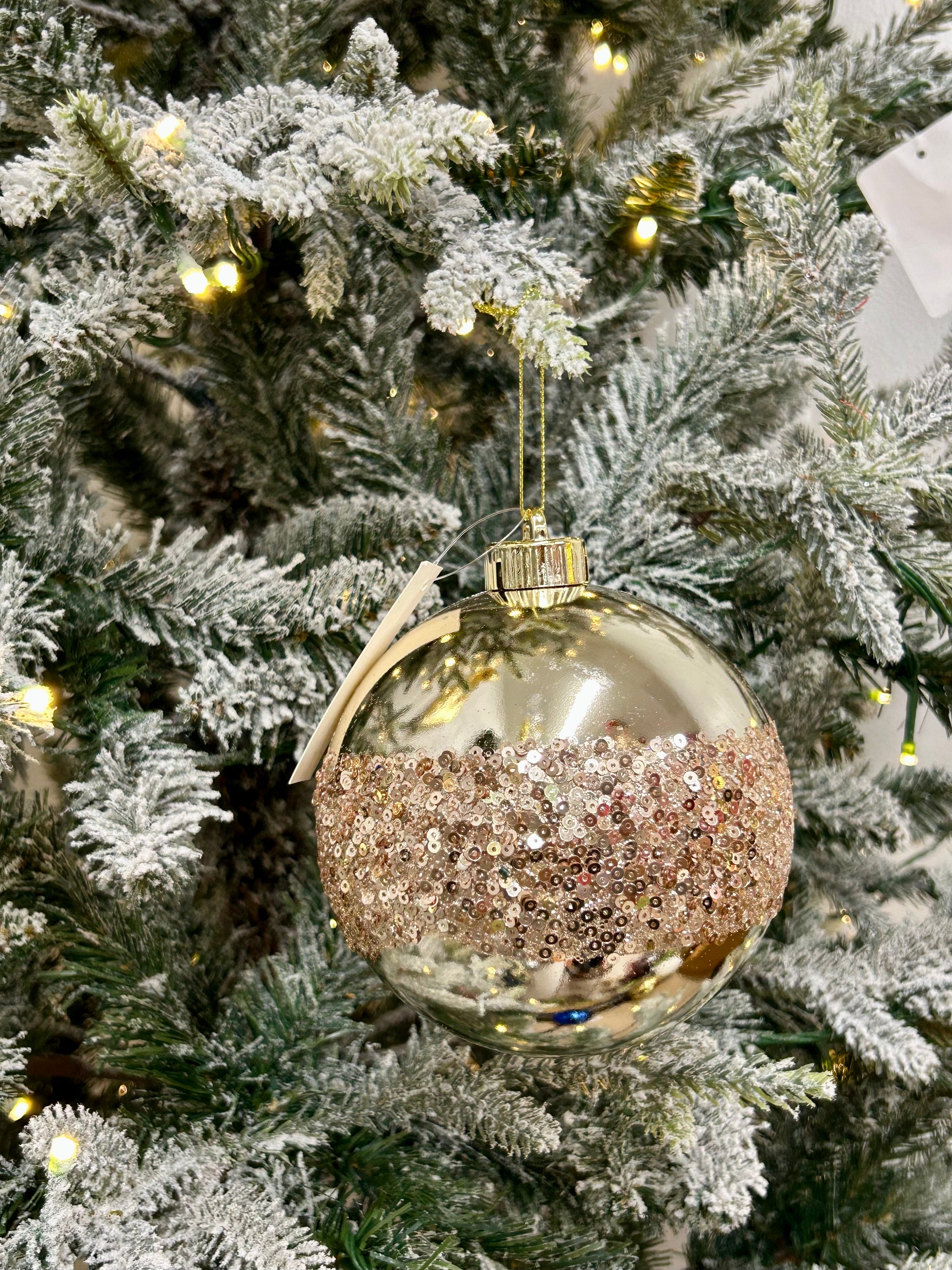 Elevate your seasonal décor with the 5 Inch Champagne Sequin Ball Ornament. Its shimmering champagne-colored sequins add a sophisticated sparkle, making it perfect for Easter, fall, and Christmas displays. This versatile ornament brings refined elegance to any setting, enhancing wreaths, trees, or table centerpieces with a subtle yet festive touch. Crafted for lasting shine, it seamlessly fits diverse holiday themes while adding depth and texture to your decorations.
