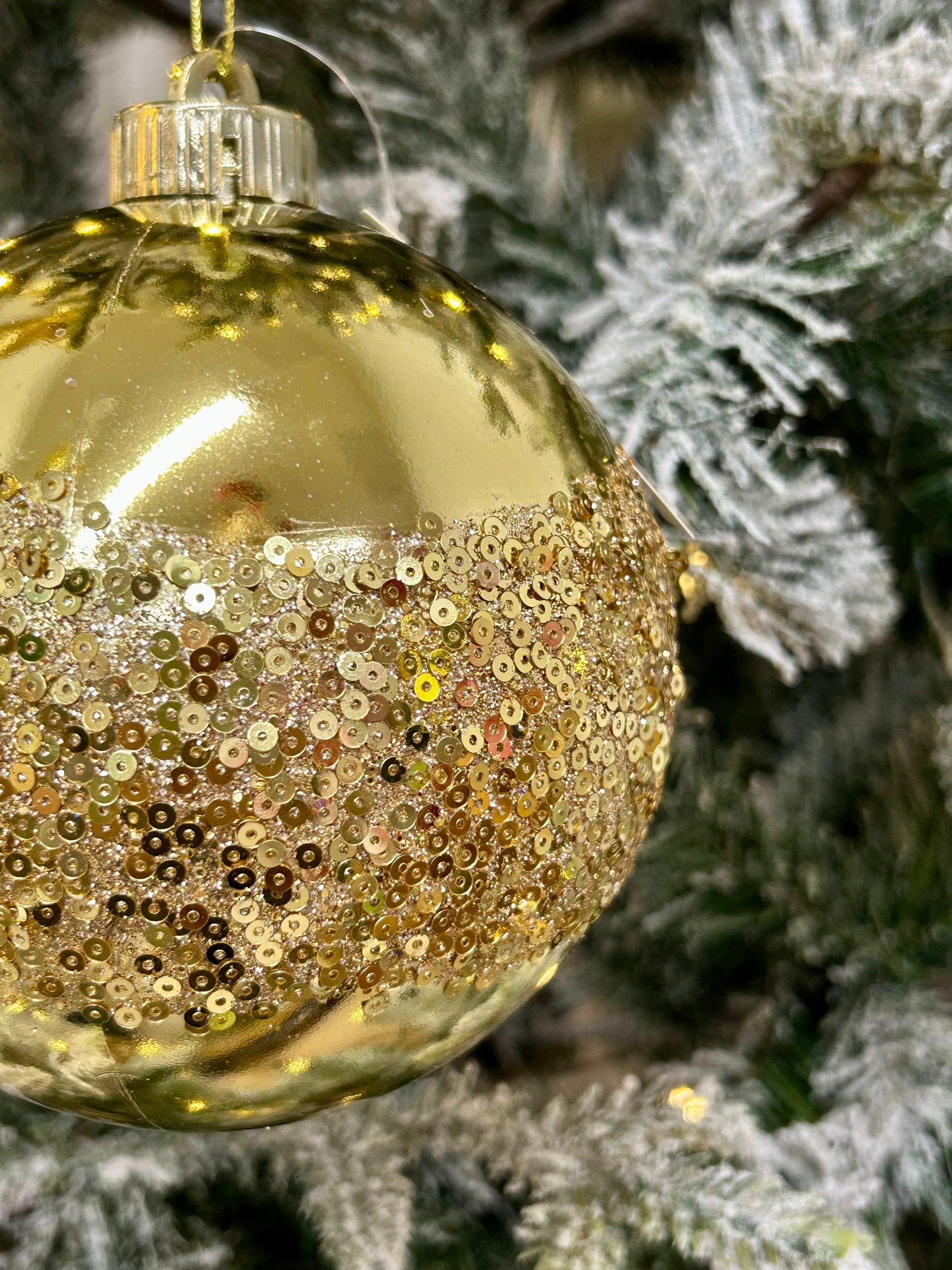 Elevate your seasonal décor with this 5 Inch Gold Sequin Ball Ornament. Its shimmering gold sequins catch the light, making it a striking addition for Mardi Gras, Easter, fall, or Christmas celebrations. Designed to complement various themes, it adds a touch of elegance and festive sparkle to your home or event setting, enhancing the atmosphere with a refined, celebratory glow.
