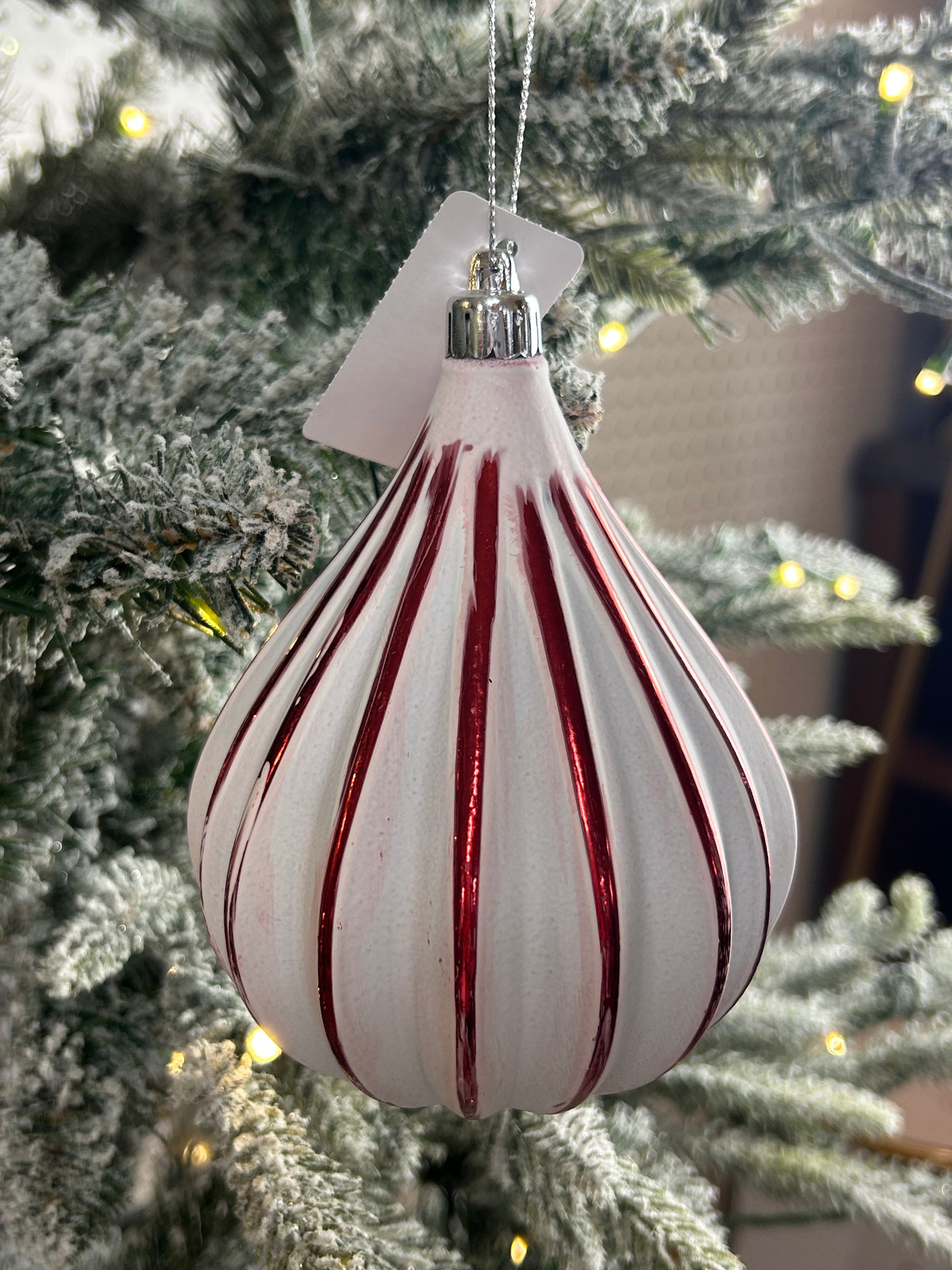This versatile 5-inch teardrop ornament features classic red and white stripes that transition seamlessly across seasons. Perfect for Christmas trees, Valentine's Day displays, or patriotic celebrations, its timeless color palette complements any décor style. The elegant teardrop shape adds dimensional interest to wreaths, garlands, or standalone arrangements. Durable construction ensures lasting beauty year after year, making it an essential addition to your rotating holiday collection.
