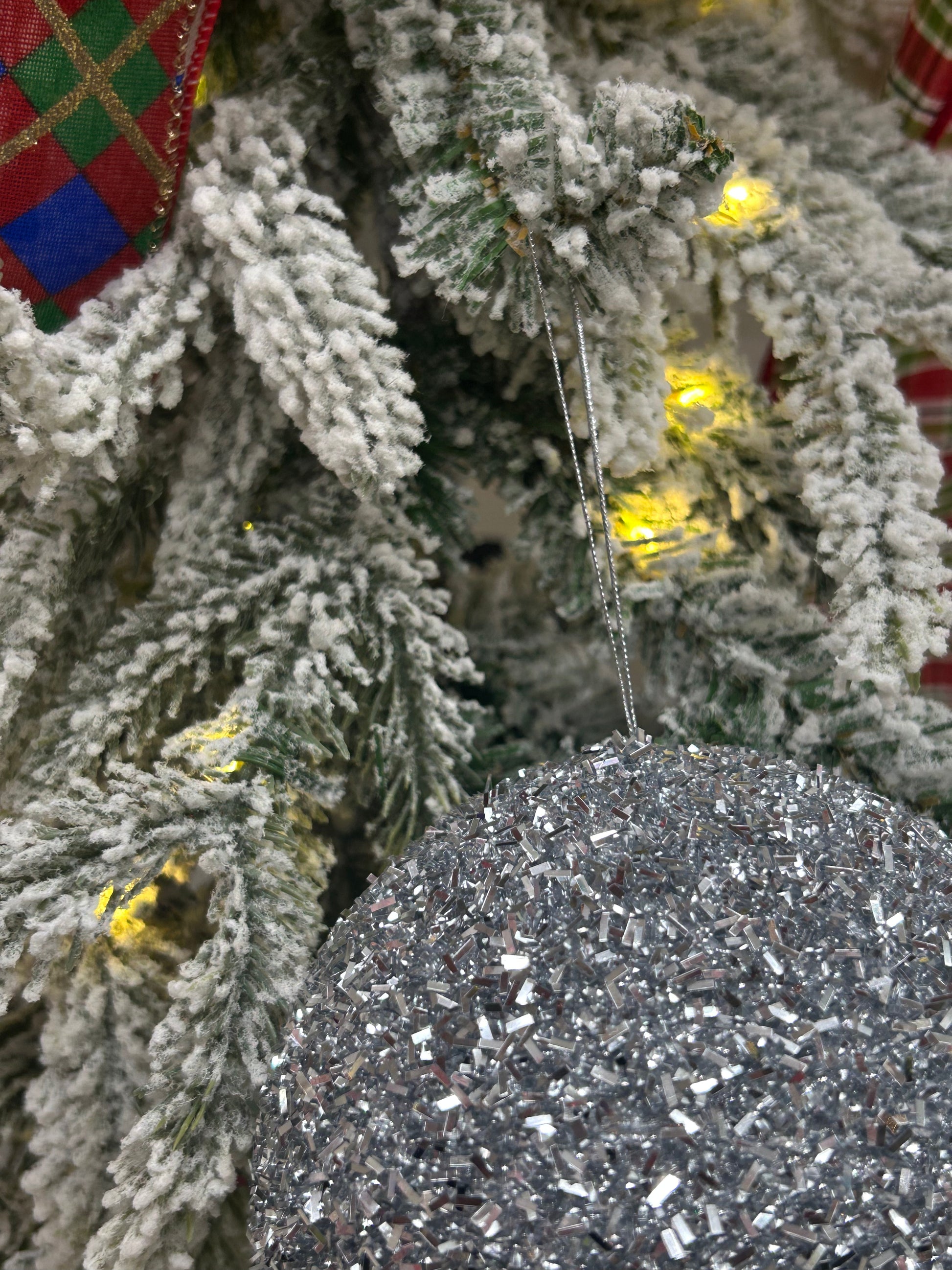 Elevate your seasonal décor with this 5-inch Silver Foil Glitter Ornament Ball. Its shimmering silver foil finish adds a sophisticated sparkle, perfect for Mardi Gras celebrations, autumnal displays, or classic Christmas trees. Crafted to catch and reflect light beautifully, this ornament enhances the ambiance of any festive setting with a subtle yet striking glitter effect. Designed for versatile seasonal use, it complements a range of color schemes while providing a refined touch to your holiday styling.