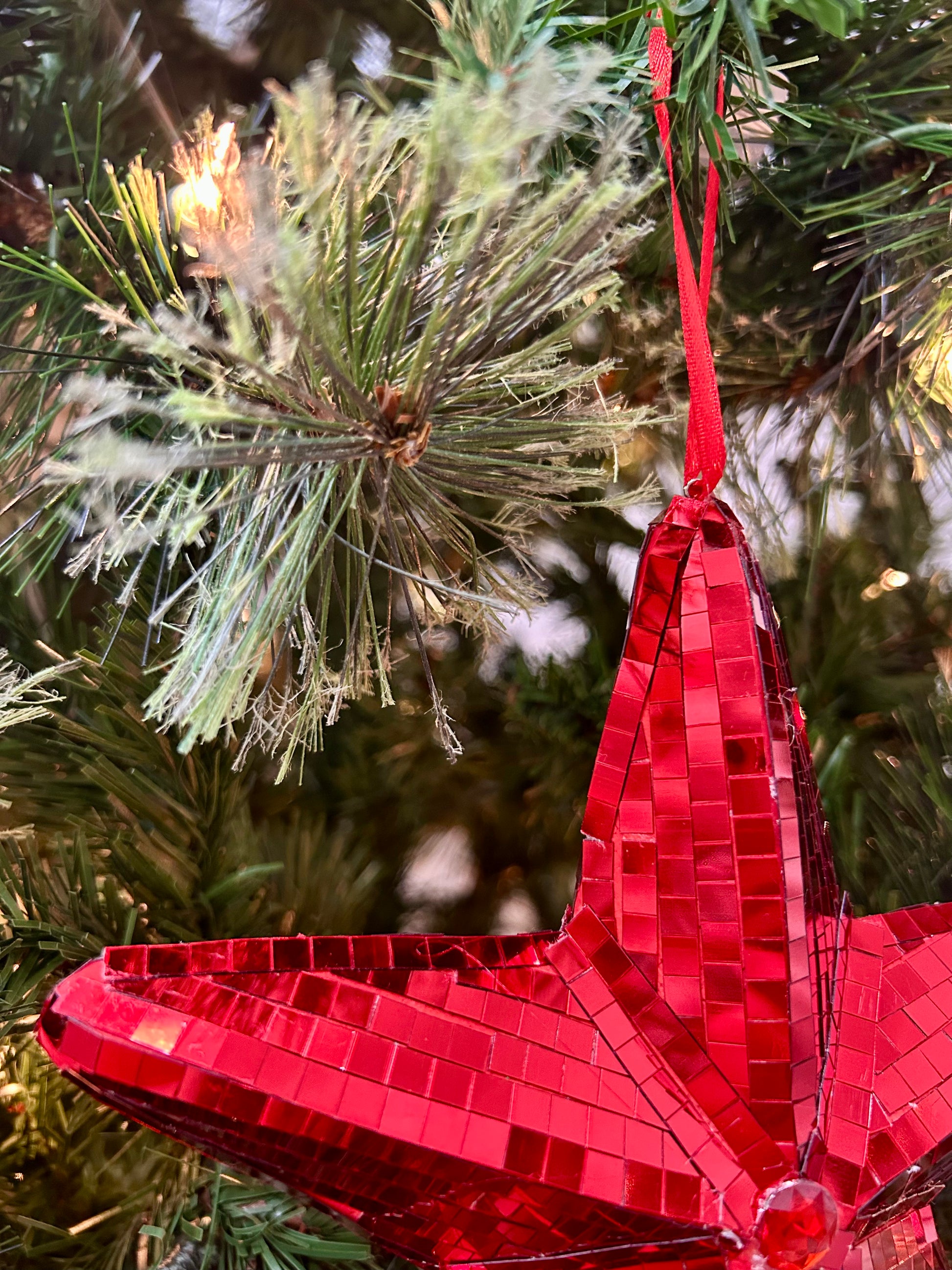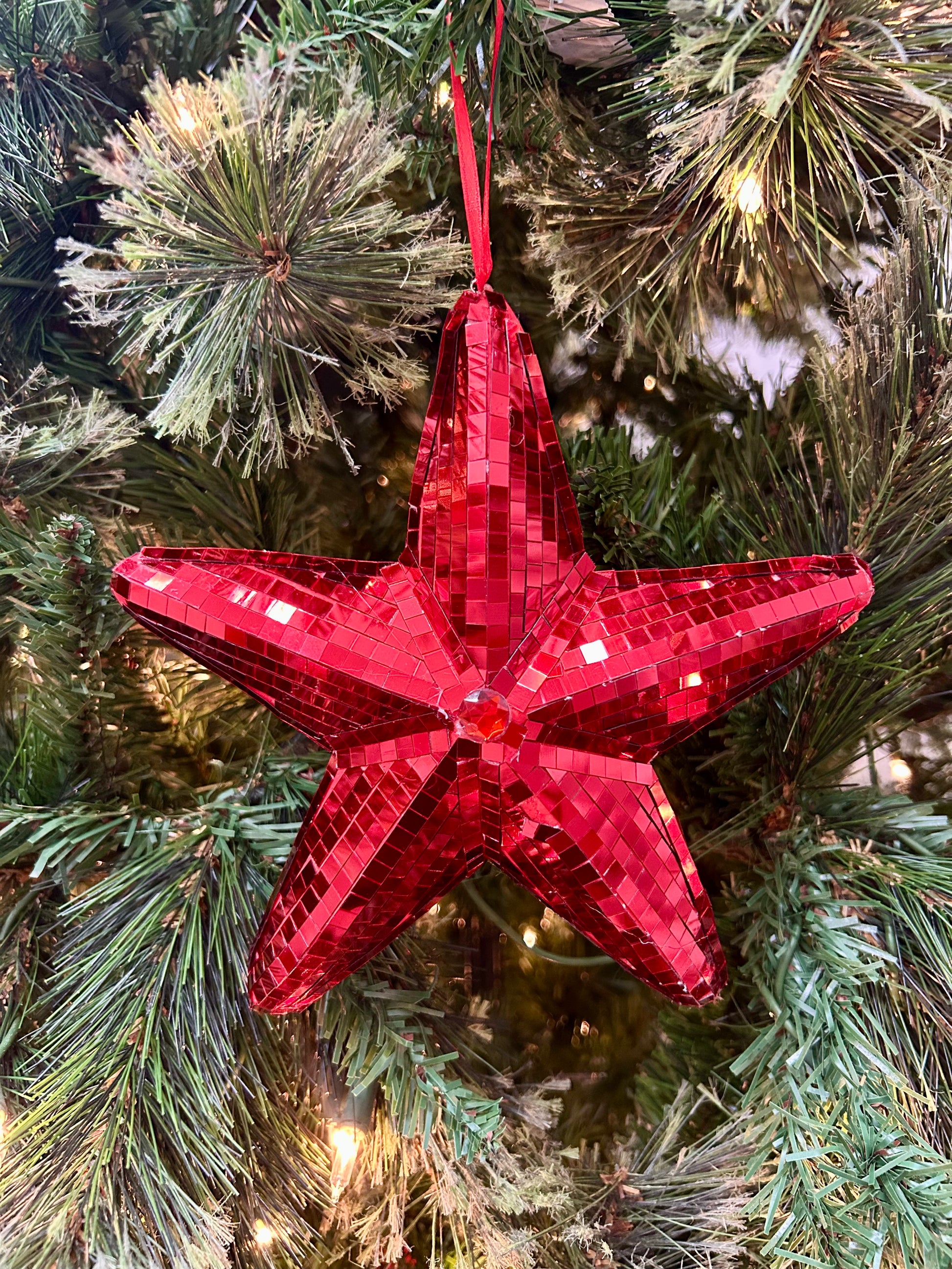 6.5 Inch Red Mirror Star Ornament