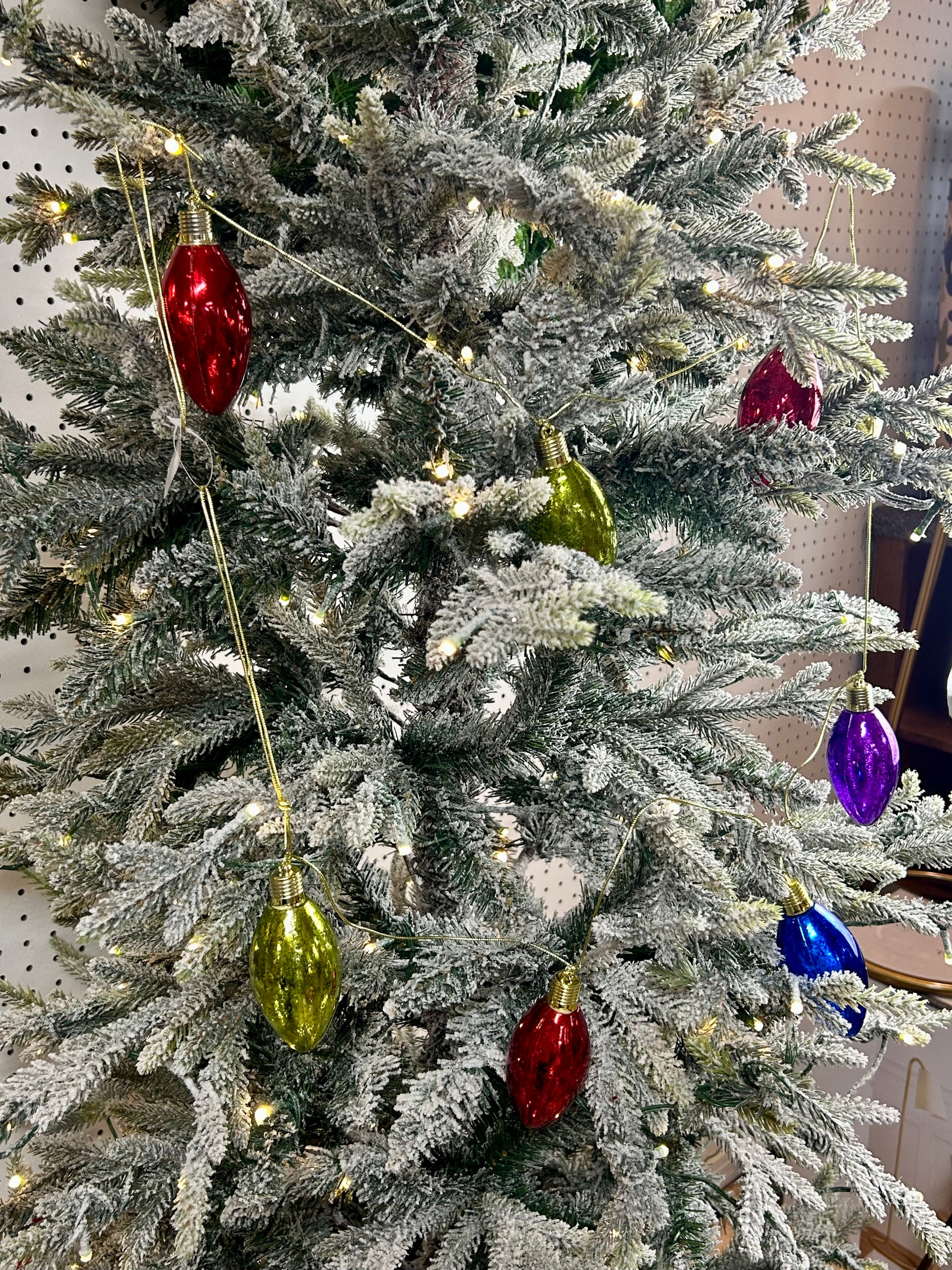 - Add A Shining Element To Your Holiday Decor With This Antique Look Large Light Bulb Garland! Featuring Multi Colored Light Bulbs With An Antique Finish, This Garland Will Make A Charming Addition To Any Christmas Wreath Or Tree! Pair This Garland With Other Glitter Elements, Like Ornaments, Or Even Christmas Lights To Keep With The Theme!