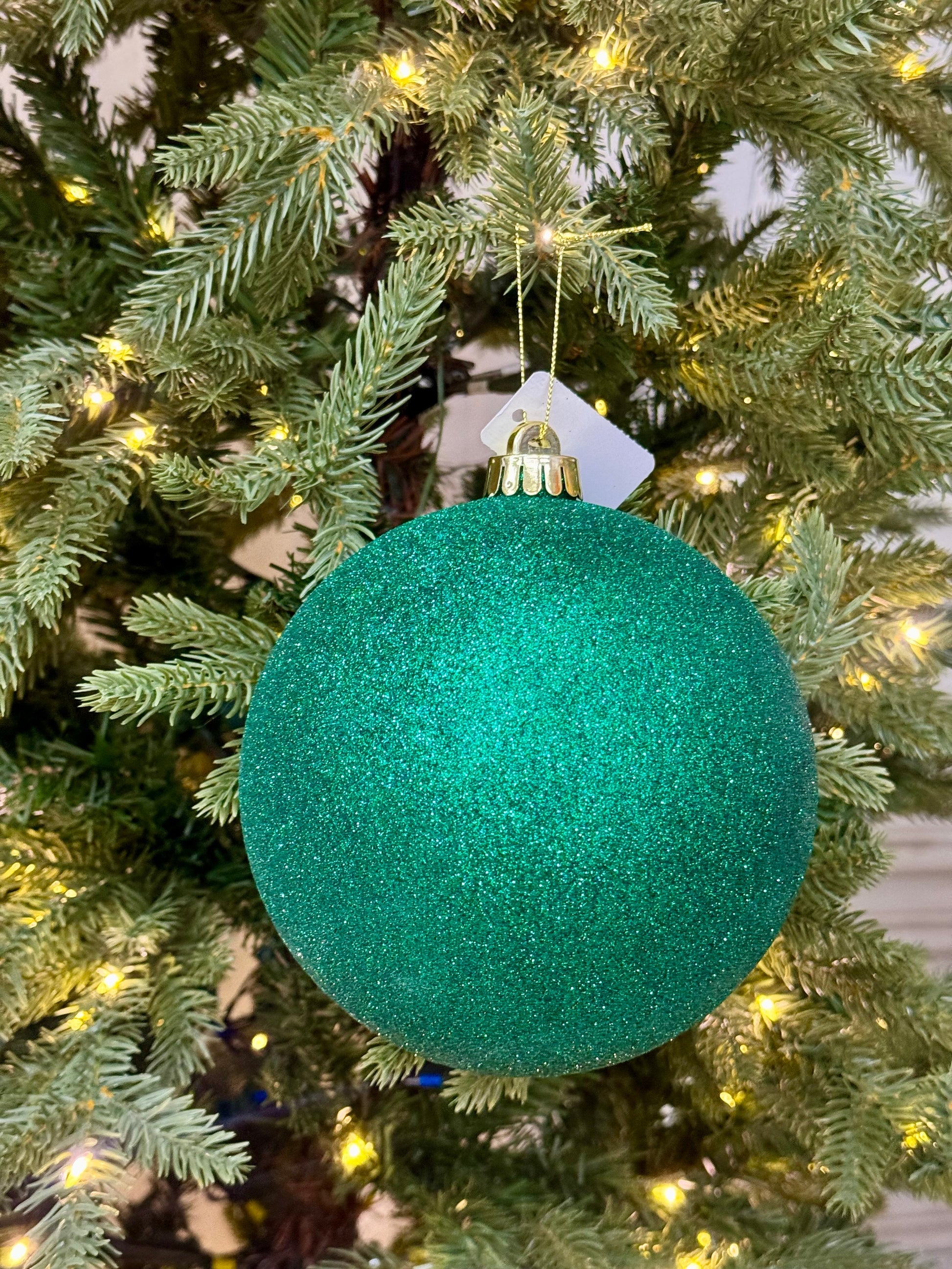 6 Inch Hunter Green Glittered Ornament Ball