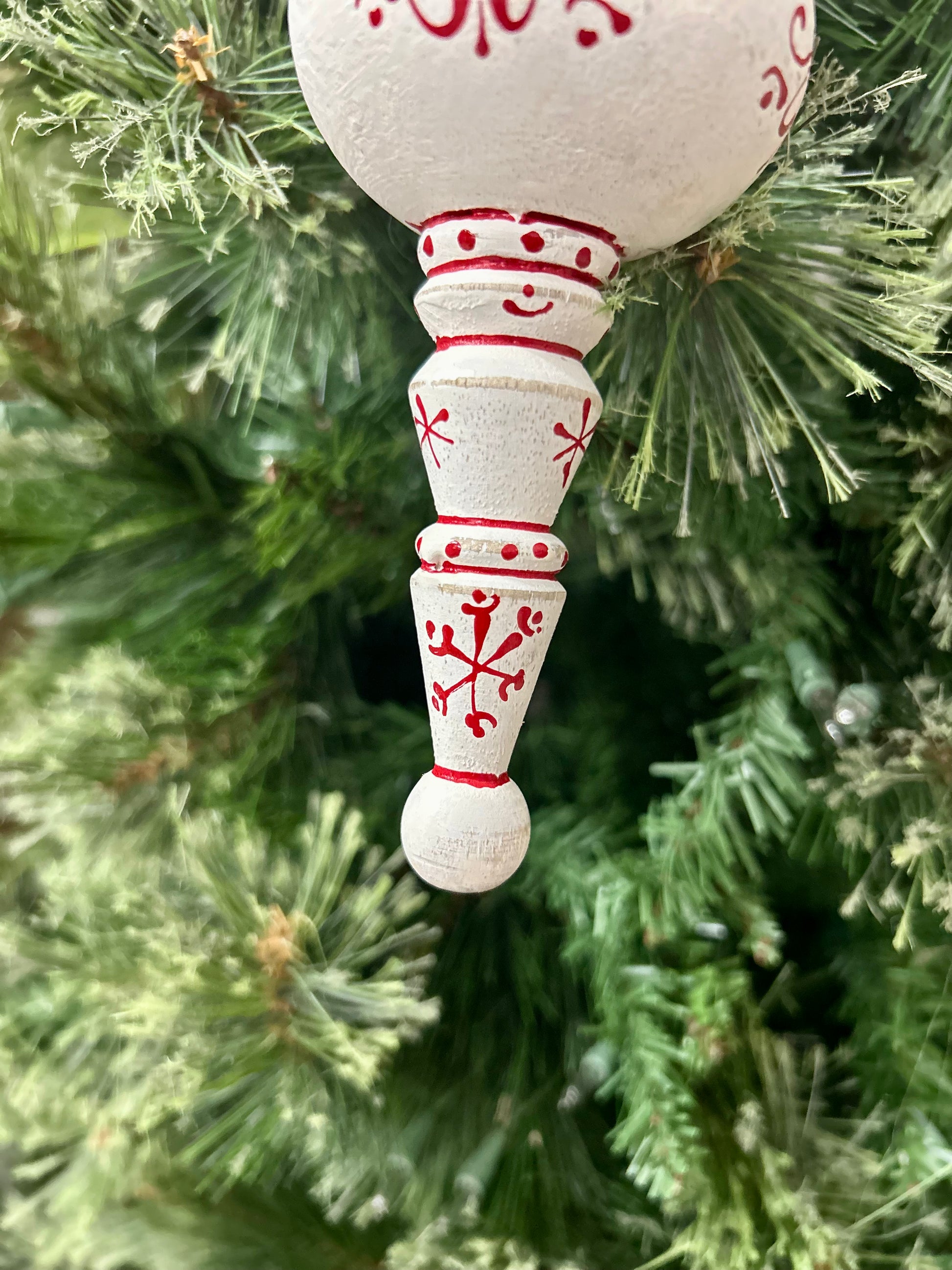 8 Inch Hand painted Wood Snowflake Finial Ornament