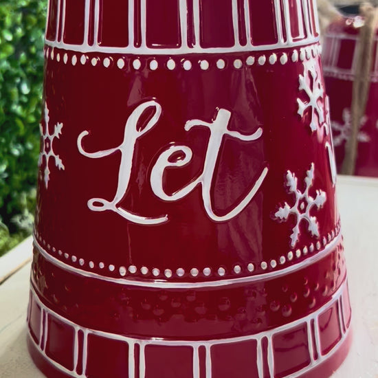 8 Inch Red Let It Snow Metal Hanging Bell