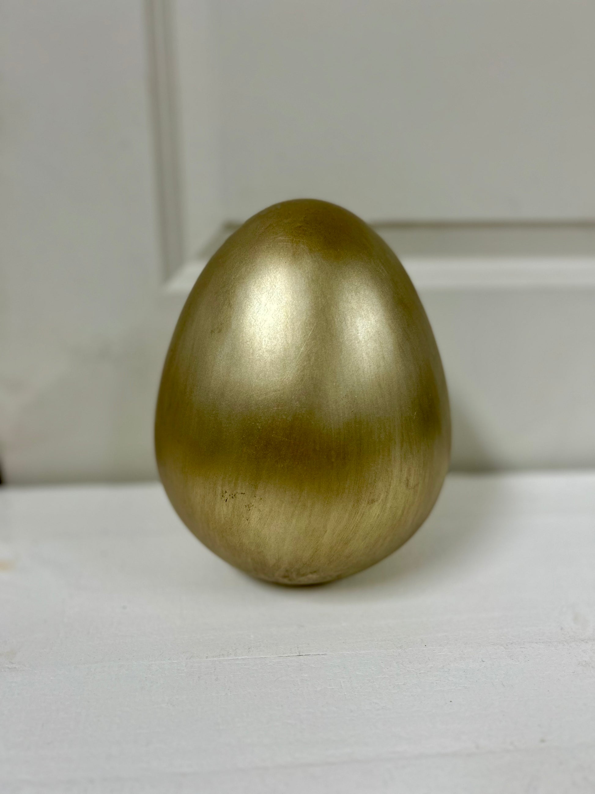 - This elegant 8-inch resin embossed bunny on egg features a champagne gold finish, combining heavy-duty durability with refined craftsmanship. Ideal for Easter and spring décor, its detailed embossing adds a sophisticated touch to your seasonal display while ensuring lasting quality.