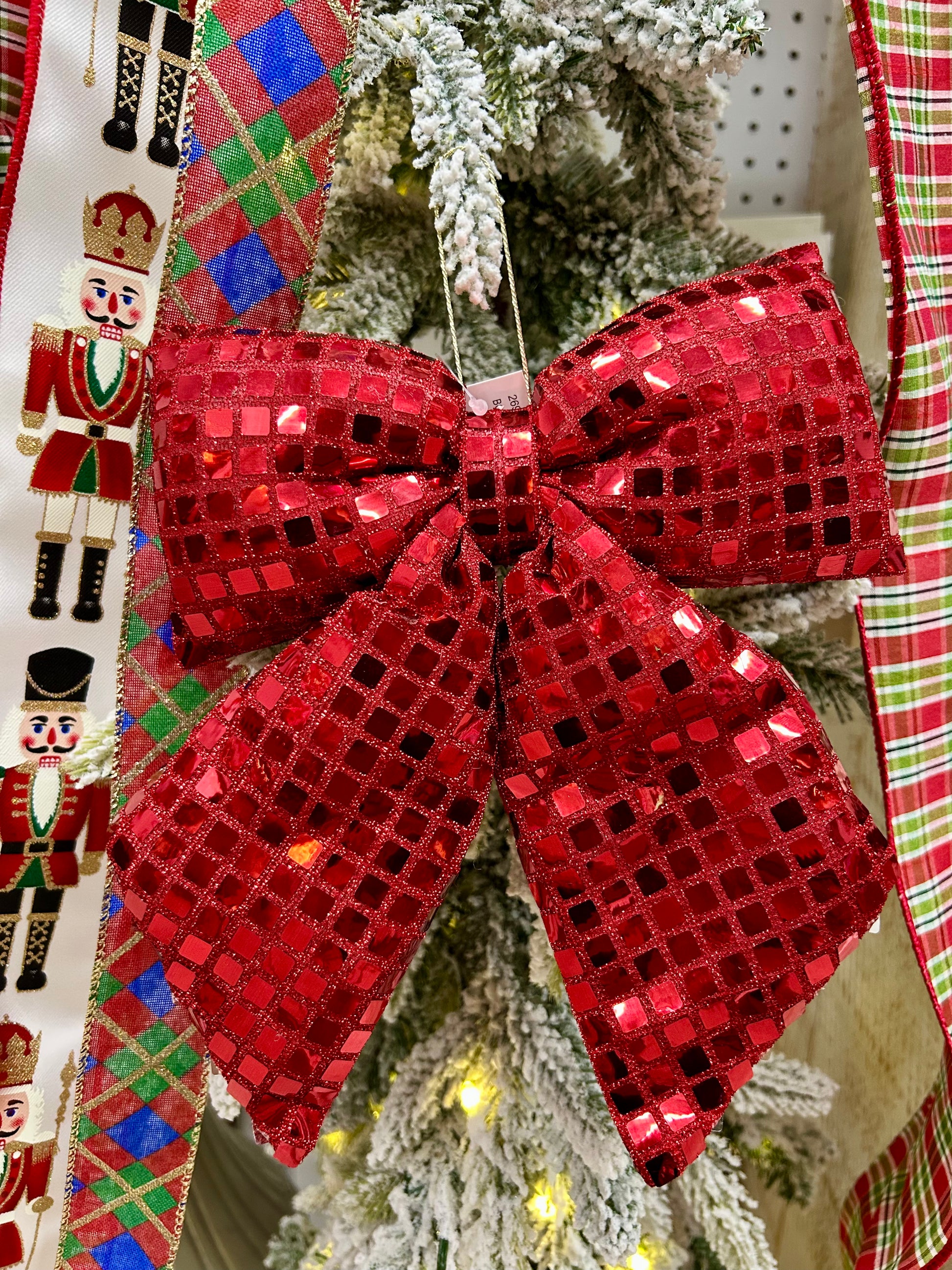 Add a festive touch to your decor with this 9.25-inch plush red bow ornament. Its vibrant color and soft texture make it perfect for various occasions—Valentine’s Day, spring and summer celebrations, patriotic holidays, Christmas, and even Whoville-themed events. Versatile and eye-catching, this ornament enhances wreaths, trees, garlands, and more with a sophisticated seasonal charm.