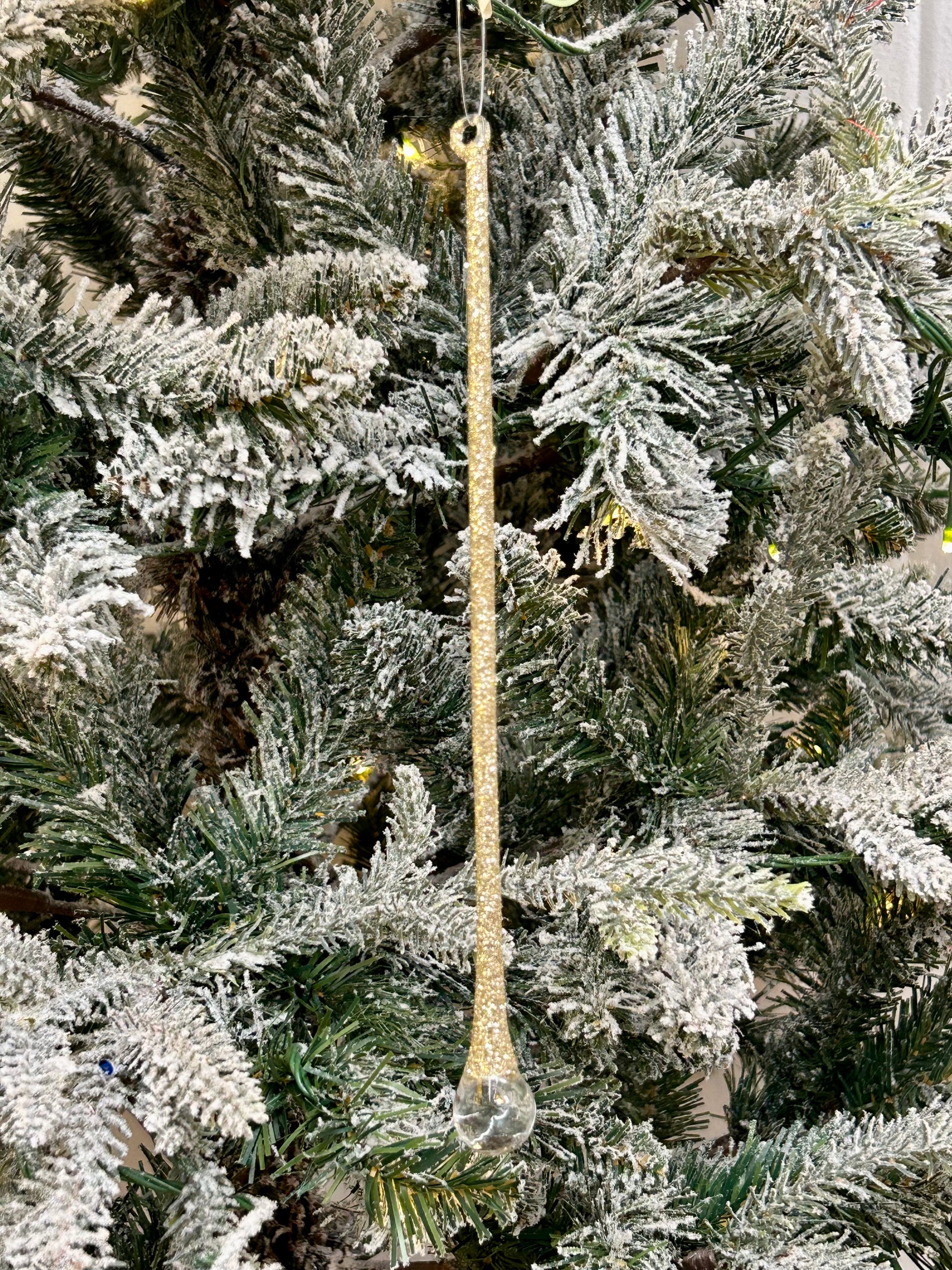 9.5 Inch Glass Champagne Glitter Drop Ornament