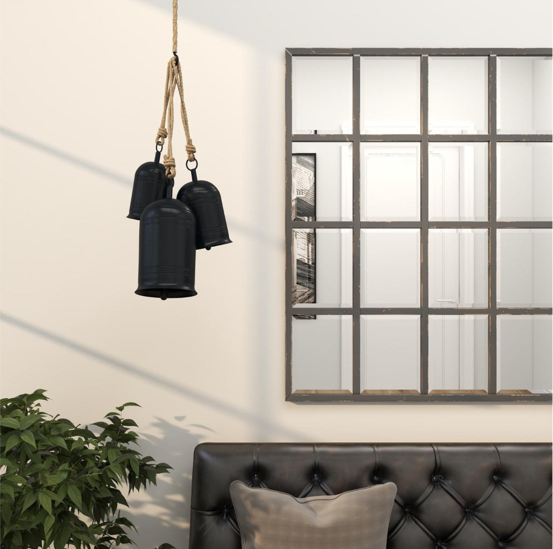 - Create a sense of balance and depth in the most unique way by hanging these bells in empty spaces needing some extra love. Bell decor set is stunning year round, but provides the added benefit of transitioning to holiday decor when the season is near. Add charming appeal to your home by placing this black set of 3 meditation bell in a doorway or hallway corner, or kitchen for added visual flair. Metal decorative cow bells makes a great gift for any occasion. Can be hung vertically using the jute rope; nails and screws not included. Suitable for indoor and outdoor use. This black colored metal meditation bell comes as a set of 3. Bohemian style