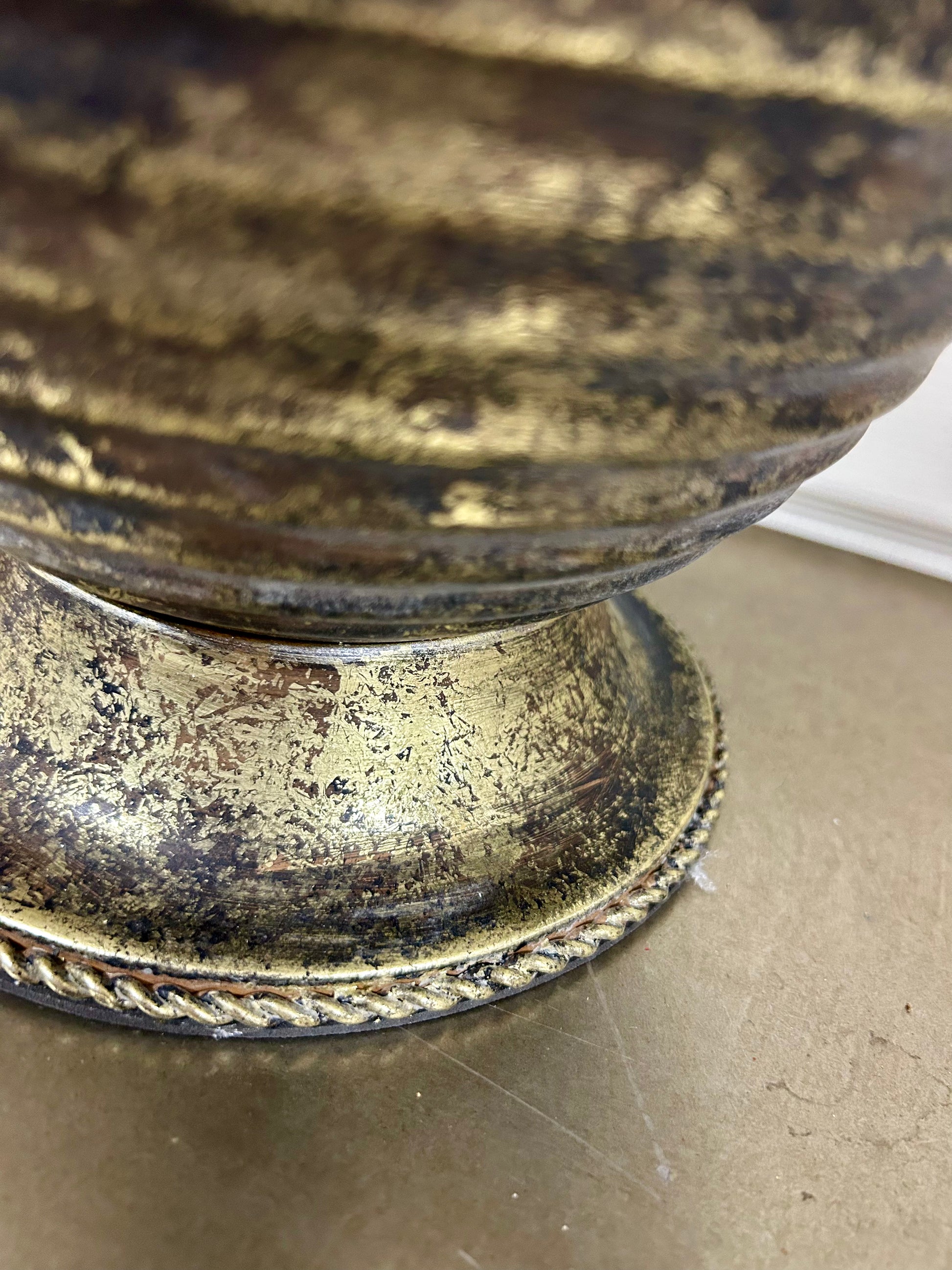 - Add a rustic feel to your home with this 10 by 6 gold and black ribbed metal urn! It will add a touch of beauty to your home this season!