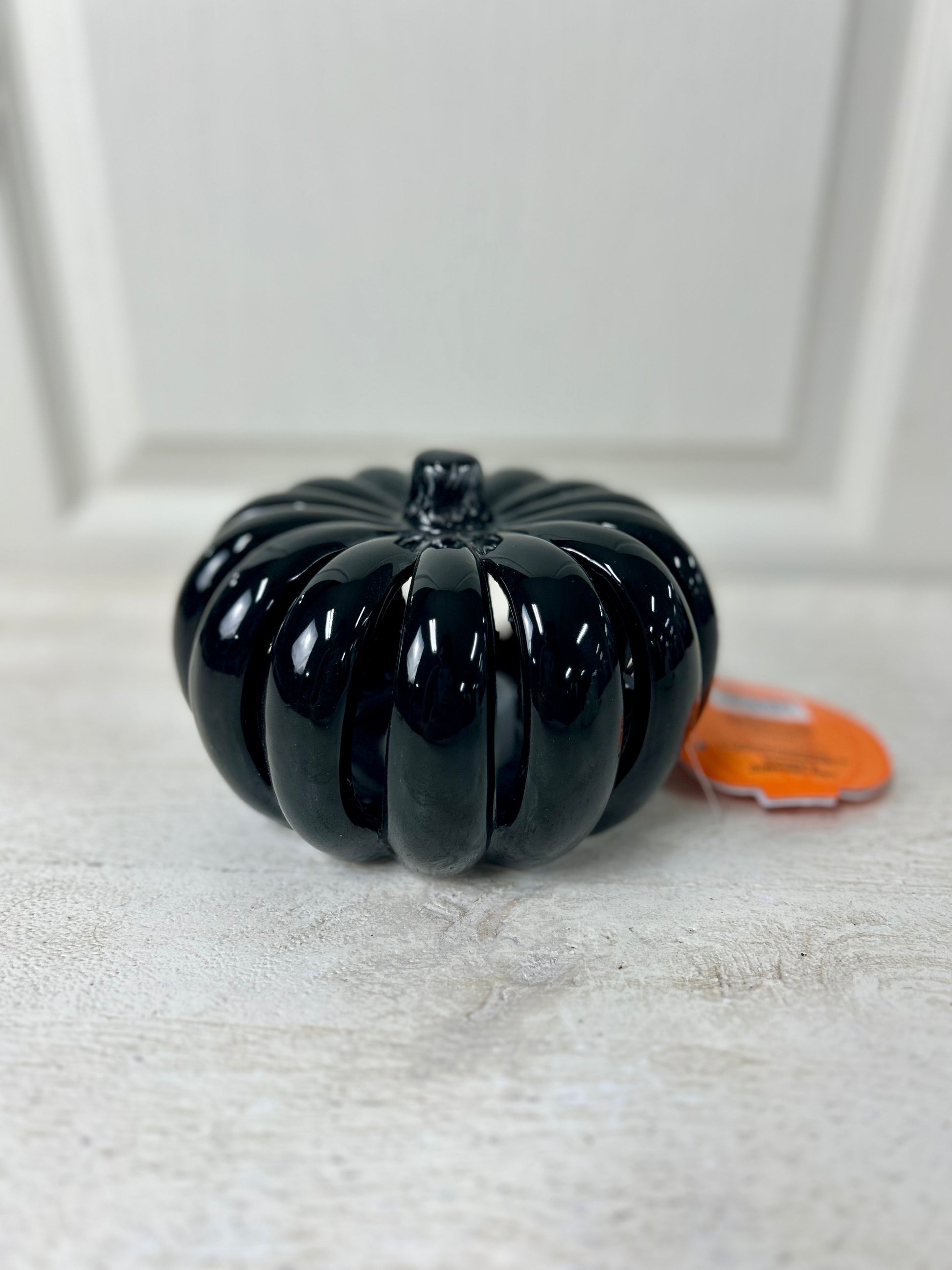 Elevate your fall decor with this expertly crafted black ceramic pumpkin featuring a built-in LED candle. Its sleek design adds a modern touch to traditional autumn themes while providing safe, flameless illumination. Perfect for creating a cozy ambiance without the worry of open flames, this durable piece seamlessly blends style and functionality for seasonal decorating.